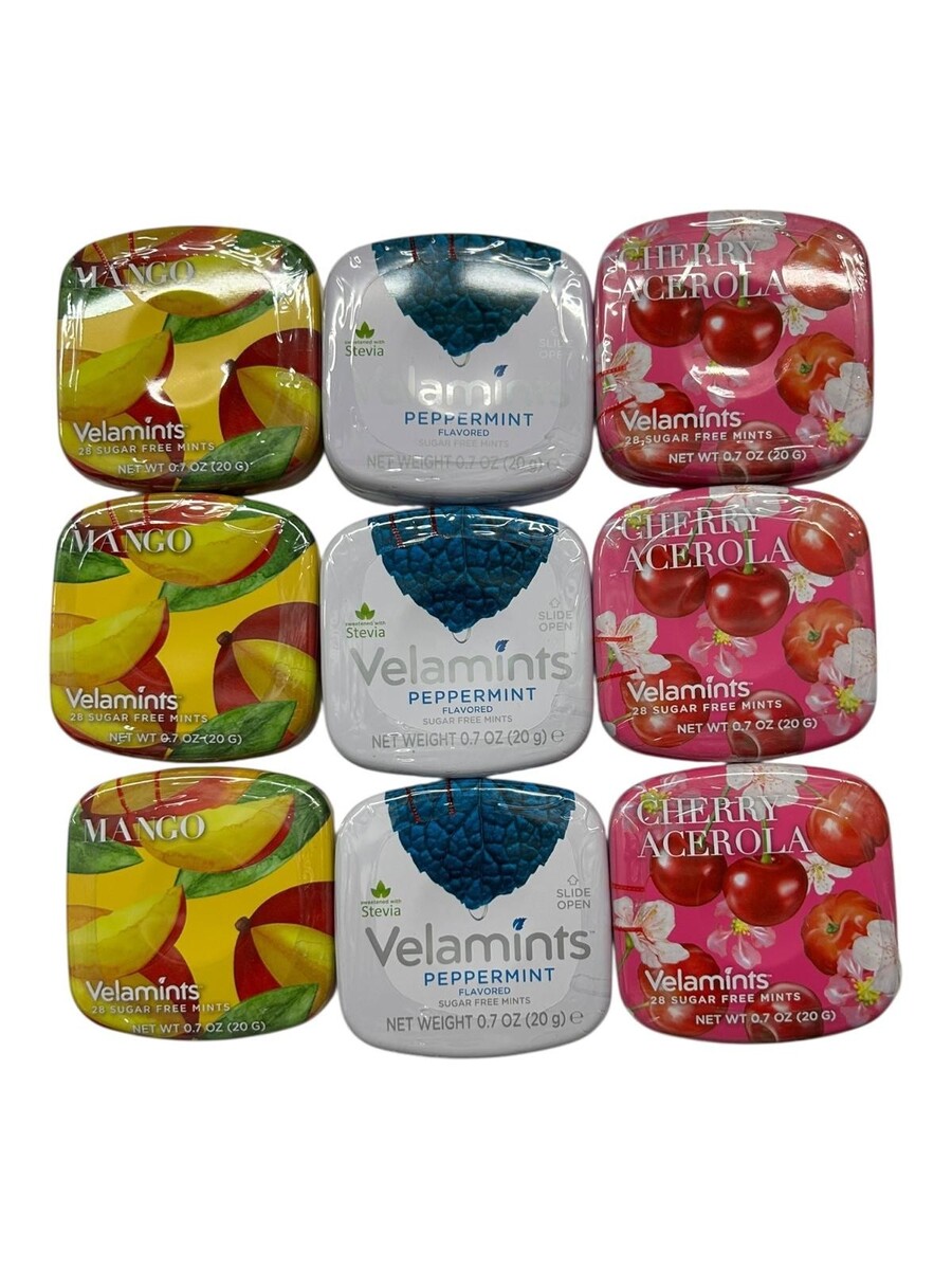 - Velamints Sugar Free Mango, Peppermint, cherry Acerola Mints Pack 9