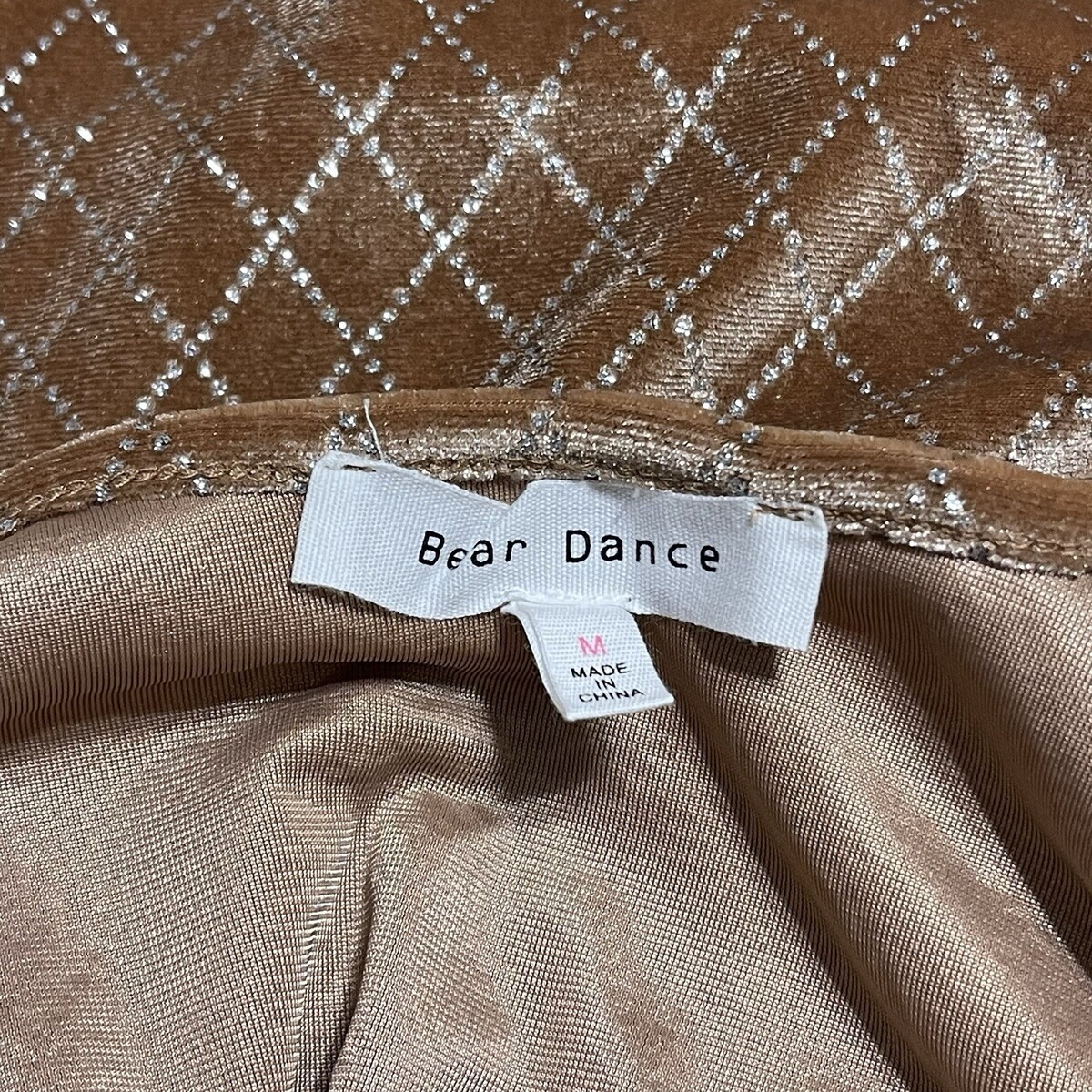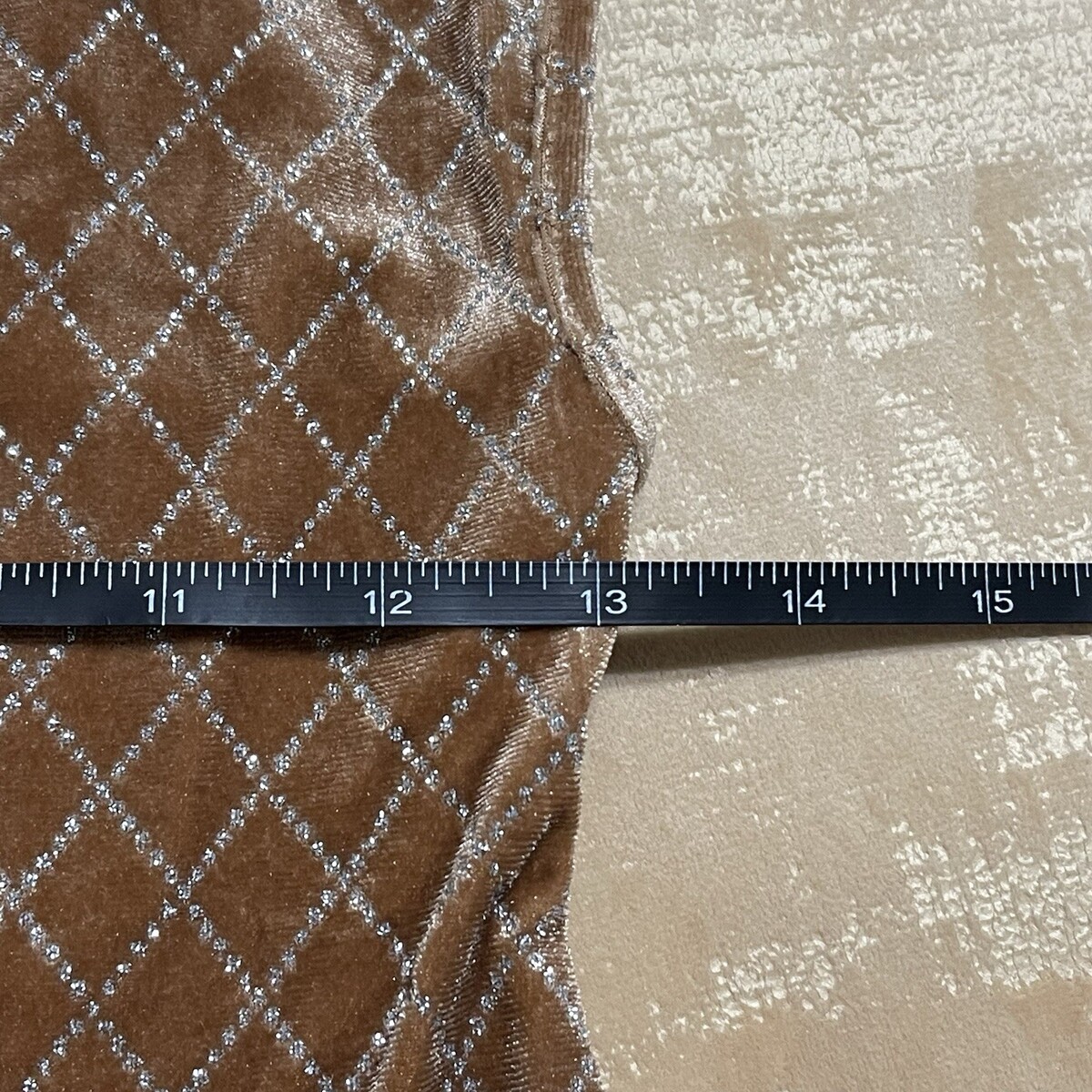 - Velvet Diamond Check Print Bodysuit Size M Light Brown Taupe Metallic Cheeky NEW