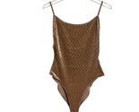 - Velvet Diamond Check Print Bodysuit Size S Light Brown Taupe Metallic Cheeky NEW
