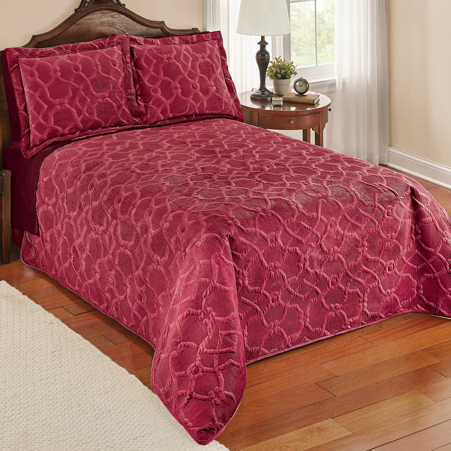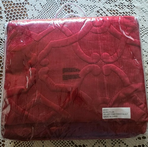 Velvet Embossed Lattice Quilt ~ Burgundy Colored ~ 86" x 86" ~ Full/Queen