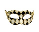 Product description: Bring a touch of mystery and old-world elegance to your next event with this Venetian Harlequin Mask. Handmade from premium papier mache and finished in a striking black-and-white diamond pattern with golden accents, it captures the timeless charm of classic Venetian masquerades. Thanks to its lightweight construction and soft satin ribbons, this mask stays comfortable and secure even during long evenings of dancing and celebration. Whether for a masquerade ball, Mardi Gras, carnival, Halloween party, theater performance or themed costume event, it adds instant luxury and sophistication to any outfit. A true piece of Venetian artistry, this mask also makes a memorable gift for art lovers and theater enthusiasts.