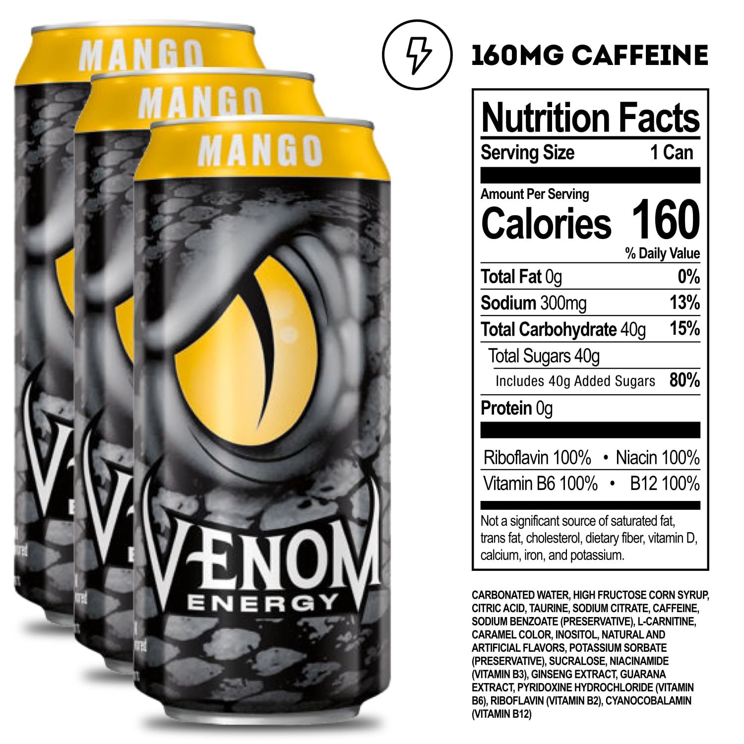 Venom Energy Drink, Mango, 0 Fat, 160mg Caffeine, 16 Fl Oz (Pack of 12) By LastF
