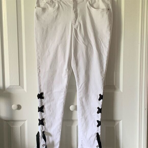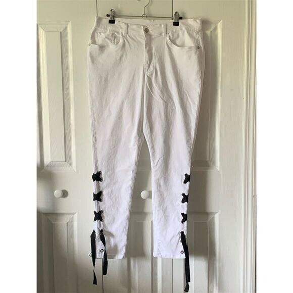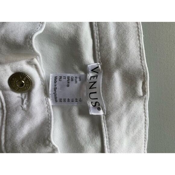 Keywords: Venus, dress pants, size 12, white pants, women's pants, casual wear, eyelet detailing, bow accents, mid-rise, machine washable, pre-owned.