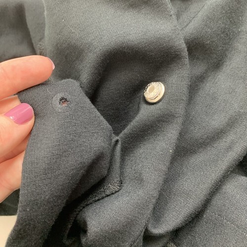This is very soft and comfortable. Good preowned condition other than the detached button.