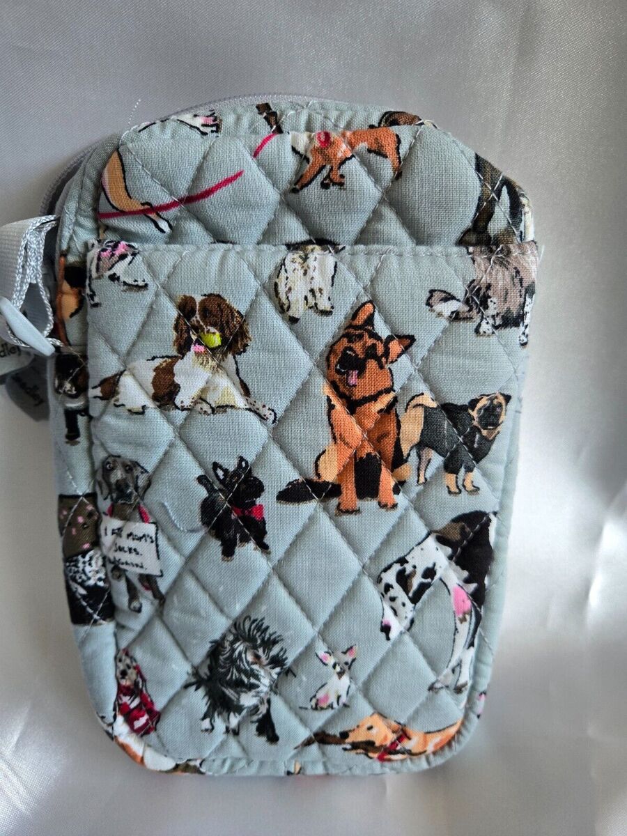 Vera Bradley Easy RFID Crossbody Bag in Dog Show is new with tags. Don't let the small silhouette fool you: this bag offers plenty of organization and hands-free function. Cotton Provides RFID protection for credit and debit cards Exterior features a slip pocket Interior features three card slip pockets Zip closure. Dimensions: 4.5" w x 7.0" h x 1.25" d with 59.0" adjustable strap