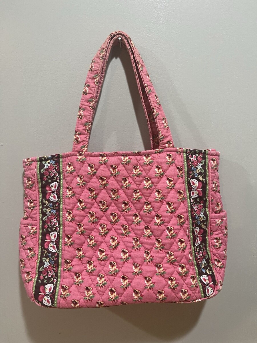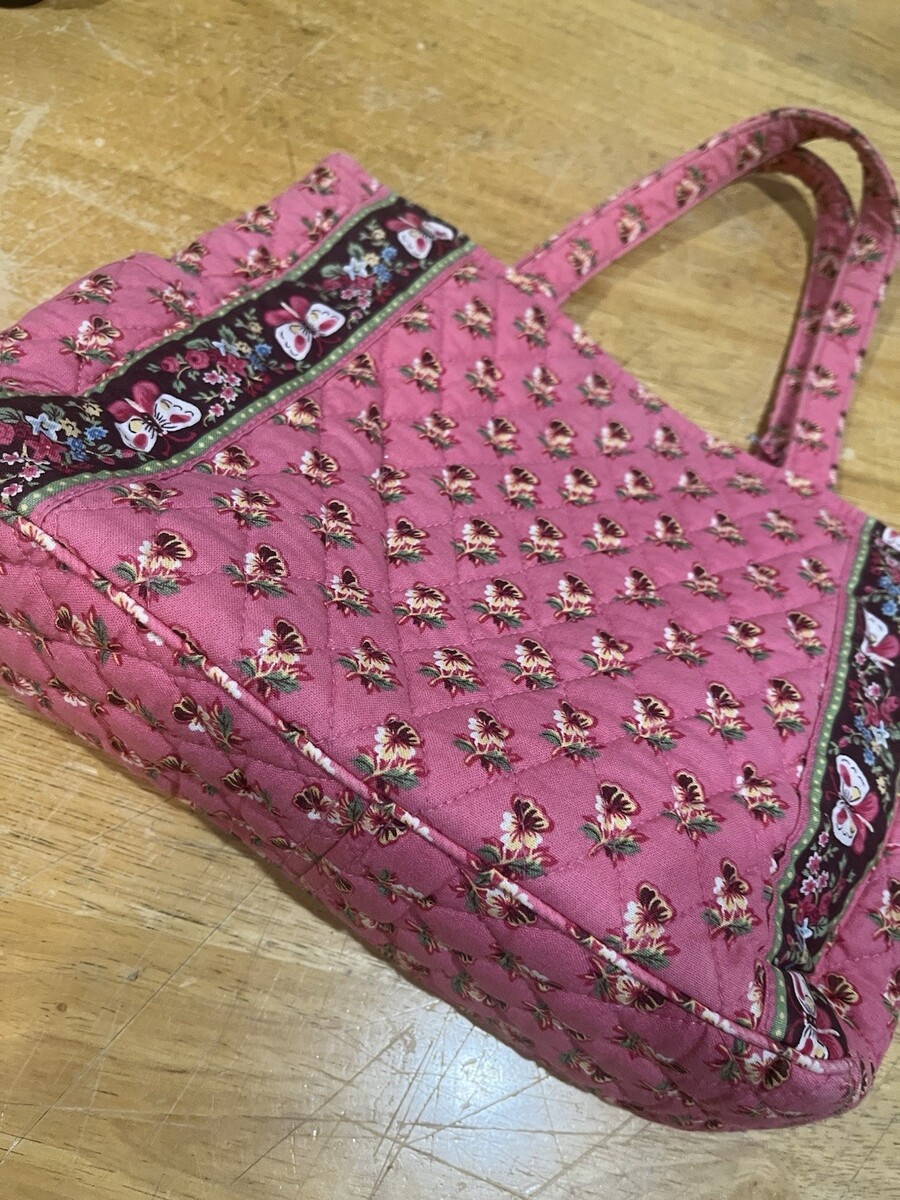 - Vera Bradley Pink Pansies Purse Tote Quilted Handbag 10x8” Butterfly Y2K