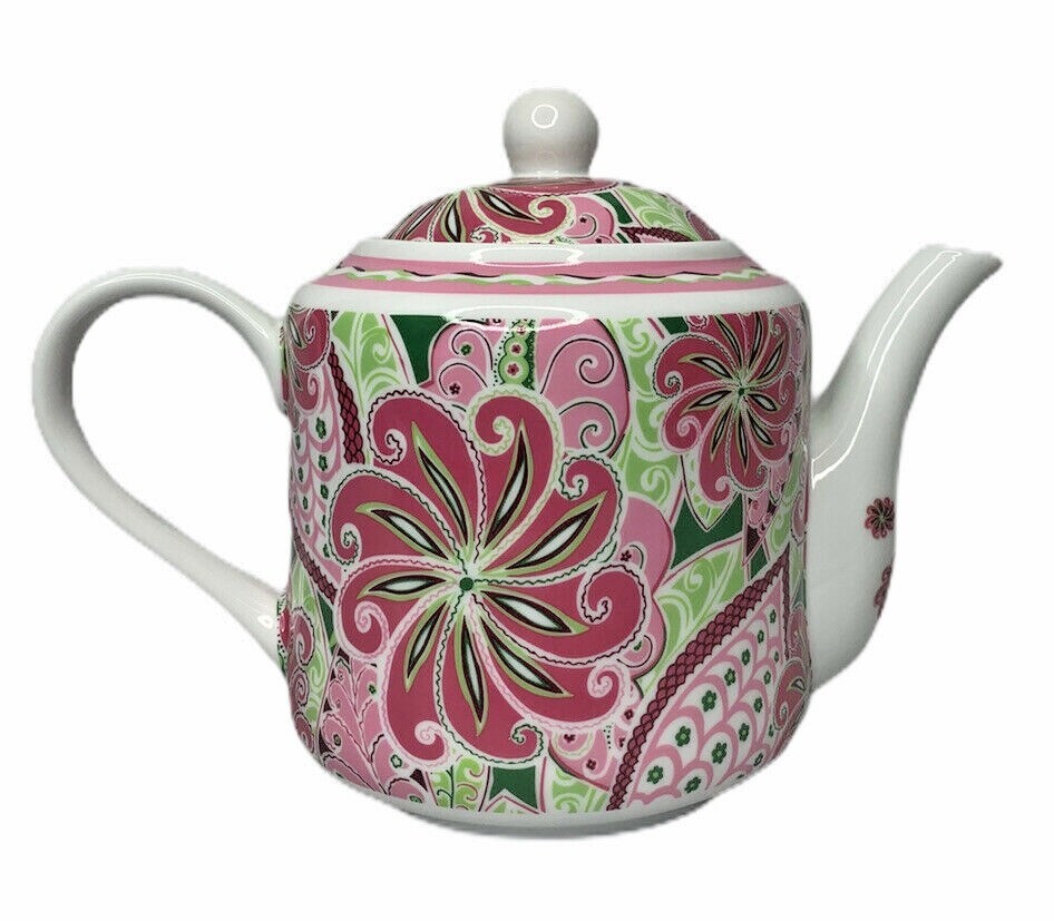 - Vera Bradley Pinwheel Pink Paisley Ceramic Teapot Andrea by Sadek Collectible
