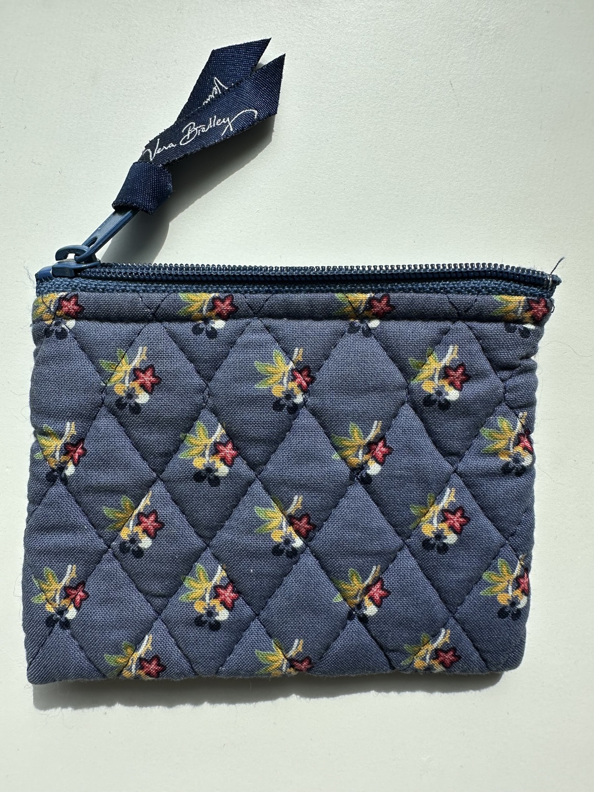- Vera Bradley zippered coin holder purse, blue. Cotton. Made in China. 5x4.