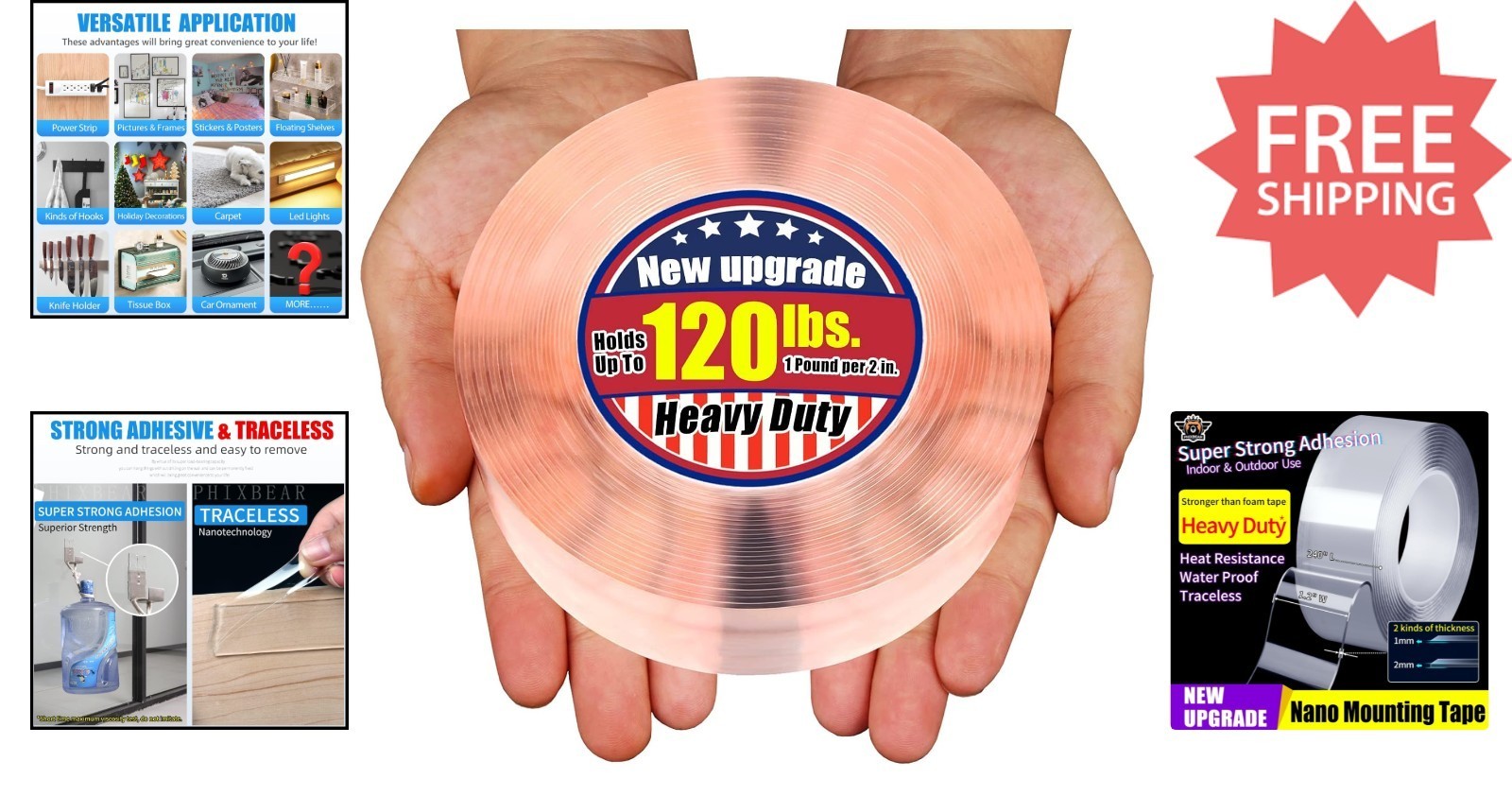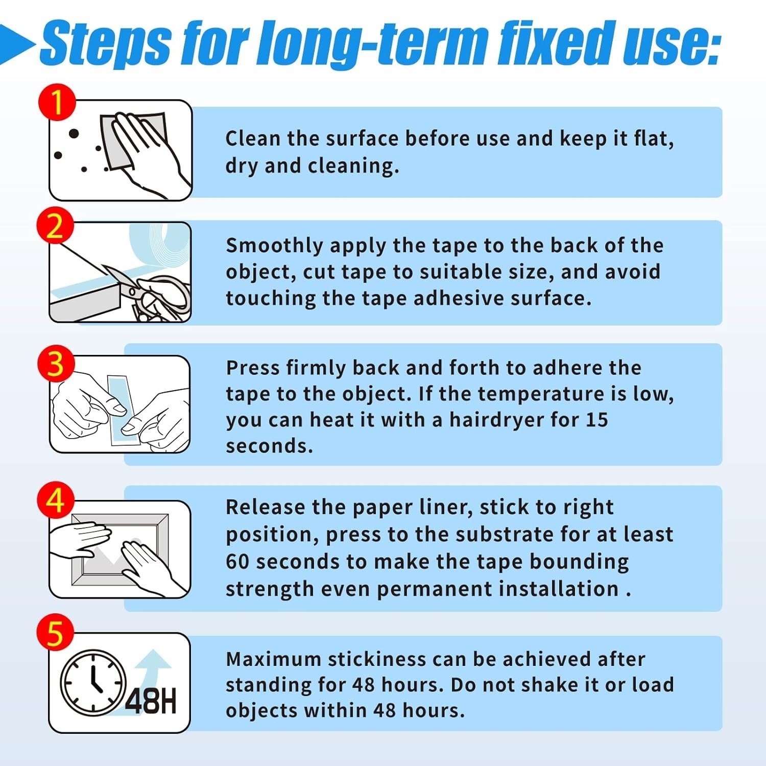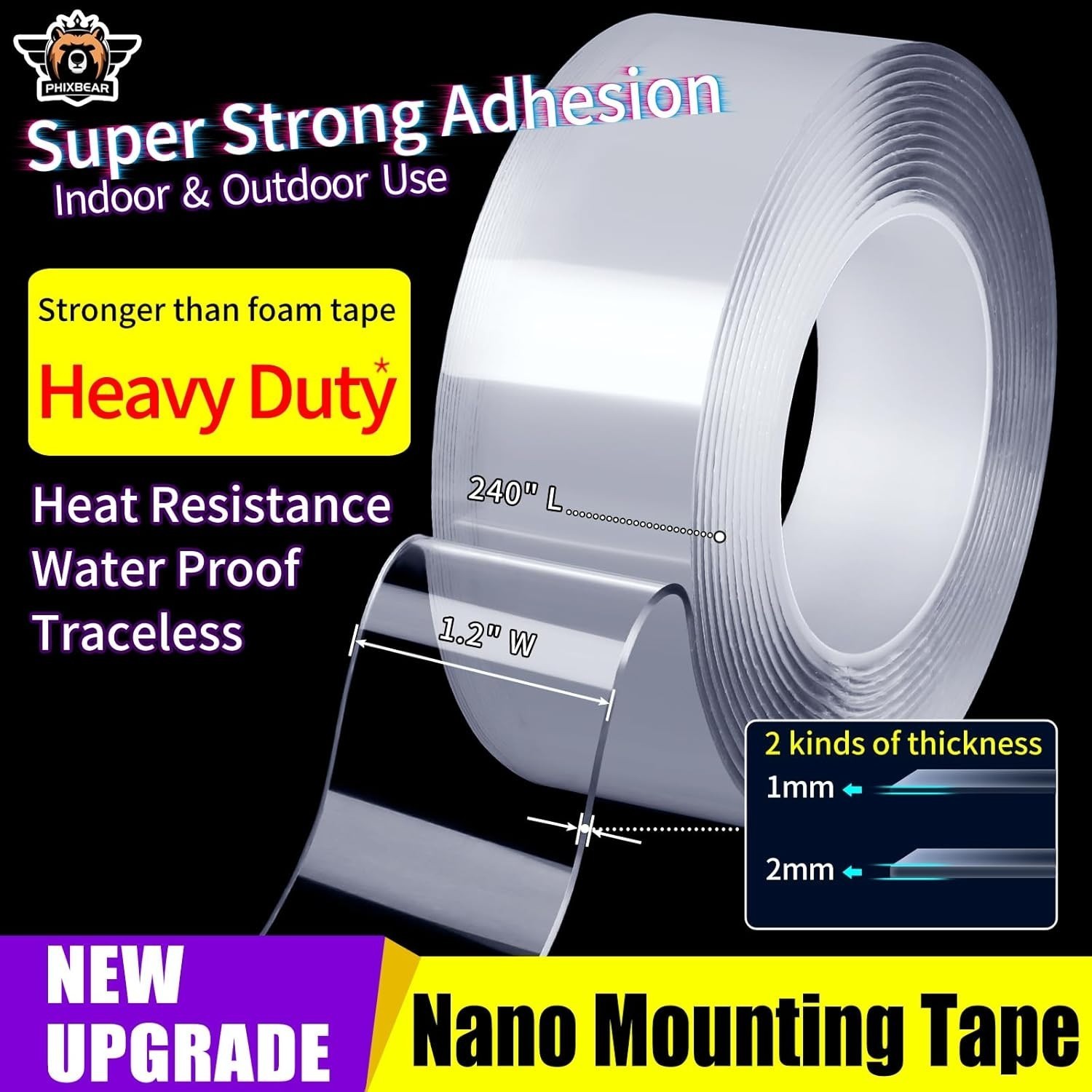 Discover our strongest multi-function double-sided tape, engineered for versatility and reliability. This tape features enhanced adhesion and toughness, supporting heavy loads while allowing easy, residue-free removal. Ideal for both permanent and temporary fixes on smooth surfaces, it?s perfect for DIY projects, wall decor, hooks, and more. Its crystal-clear design ensures a seamless finish, making your creative ideas come to life without compromise. Whether you're hanging pictures or securing everyday items, this tape offers exceptional performance and convenience.