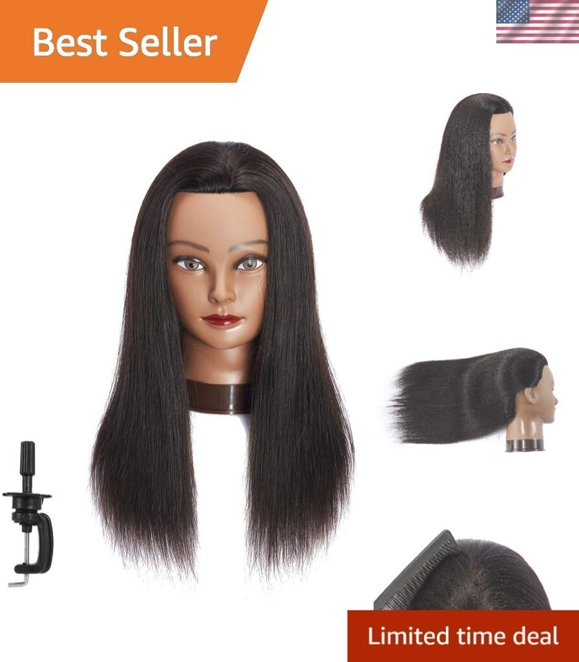 Versatile 20-22" Human Hair Doll Head - Perfect for Hair Styling Education