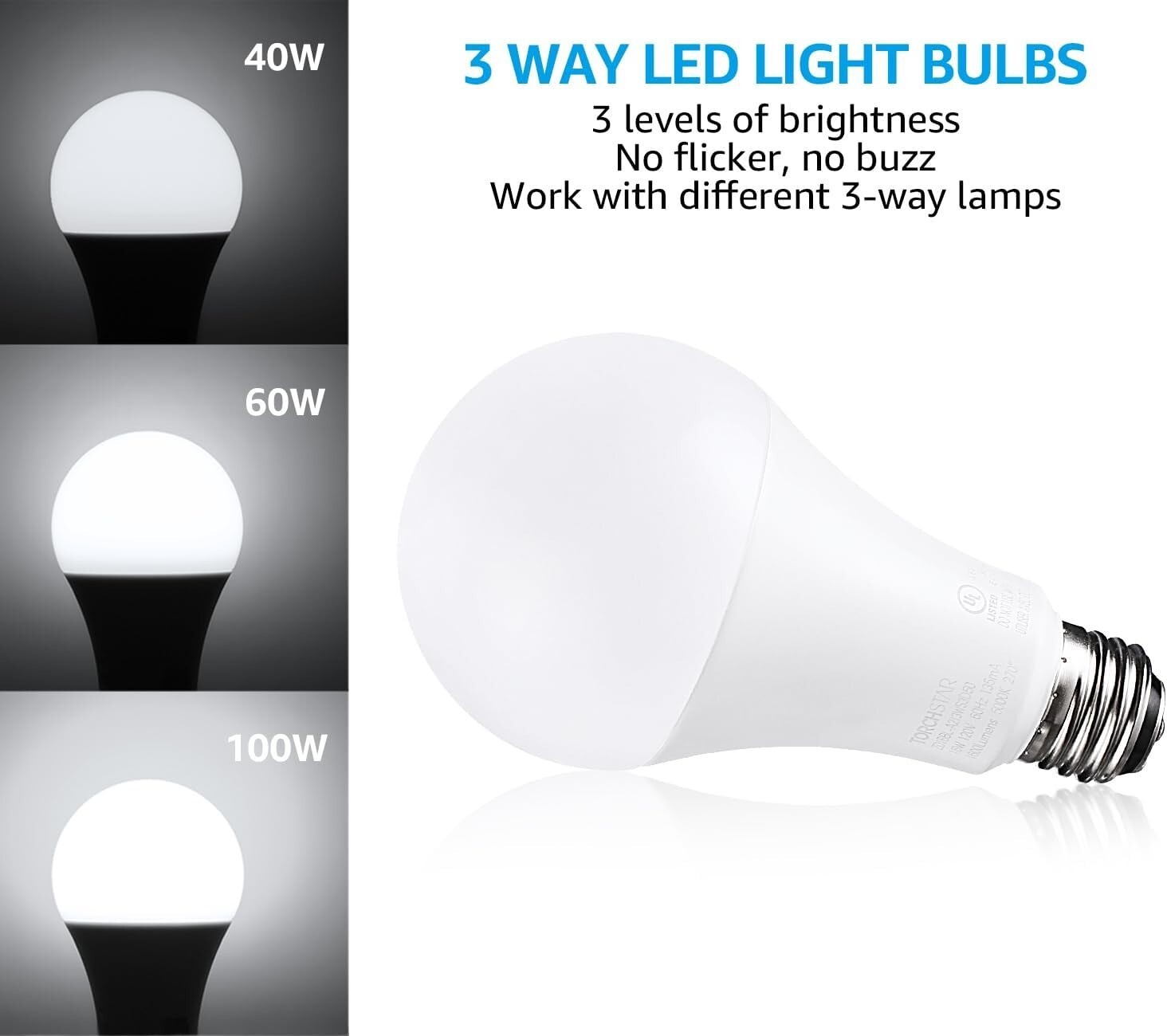 - Versatile 3-Way LED Light Bulb A21 - 40/60/100W Equivalent, Daylight, Pack of 2