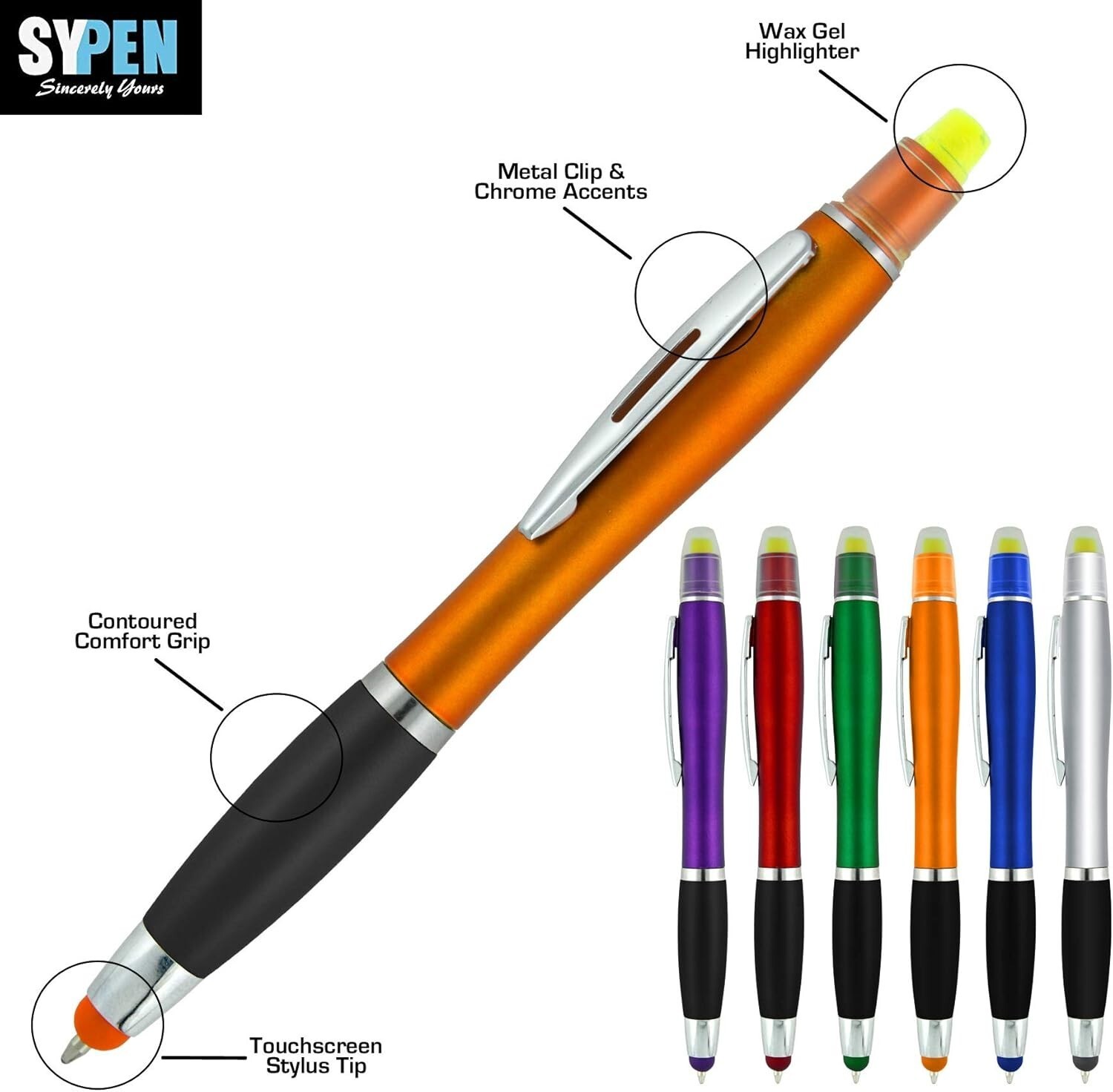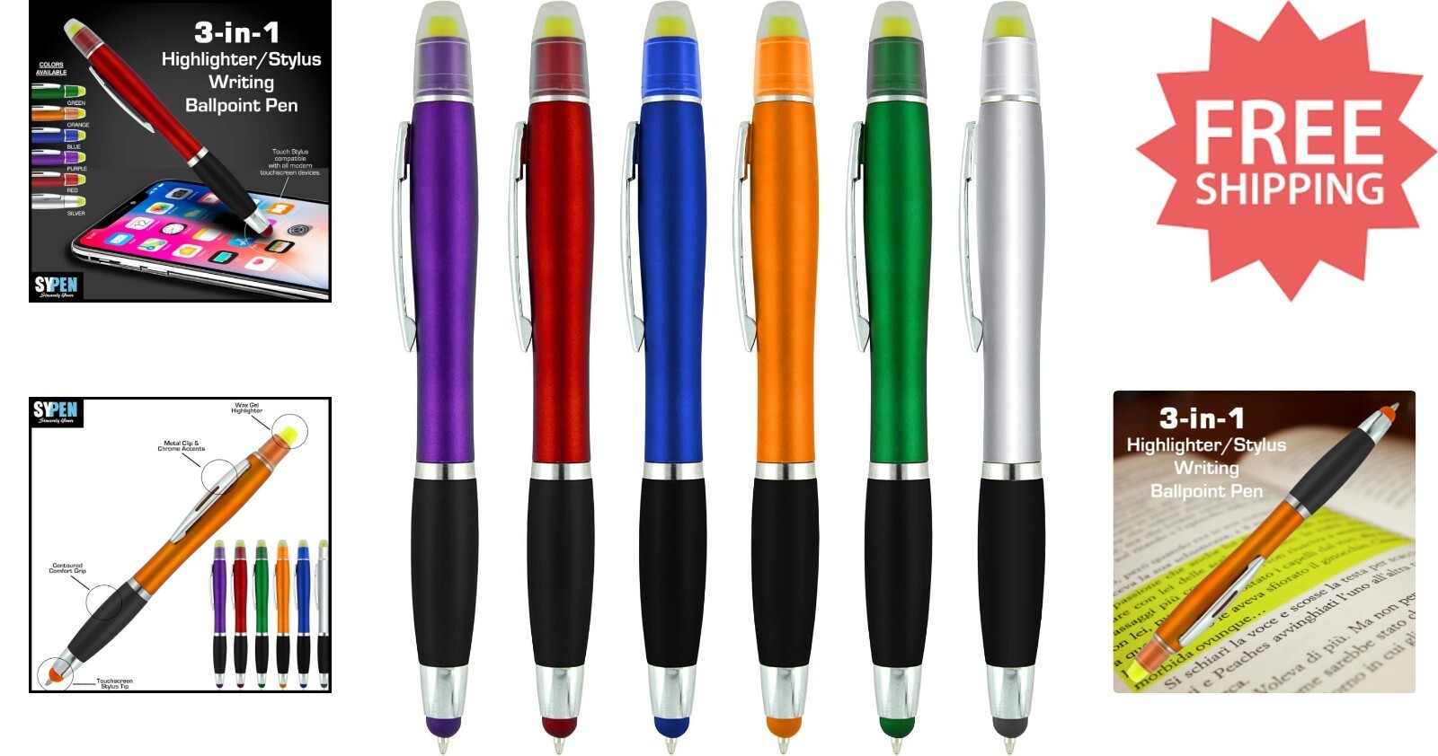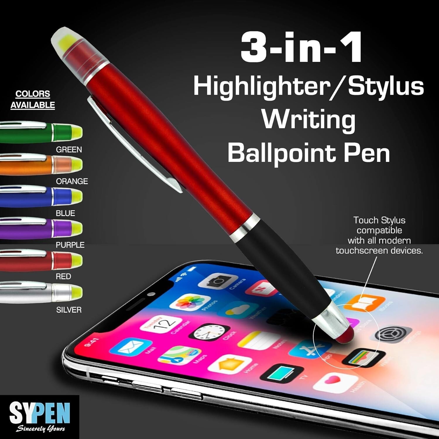 Experience the ultimate multitool with our 3-in-1 SyPen?combining a vibrant yellow wax gel highlighter, a smooth black ballpoint pen, and a highly sensitive stylus for all your digital devices. Designed for durability with a sturdy, lightweight exterior and a comfortable rubber grip, this versatile pen is perfect for home, school, and office use. The crayon gel highlighter glides smoothly without bleeding through pages, making it ideal for Bible studies and note-taking. Twist to extend either the highlighter or ballpoint, and flip to access the stylus for precise touchscreen navigation. Available in various barrel colors, this multi-functional tool seamlessly blends style and practicality. Upgrade your writing, highlighting, and digital interactions today! To ensure fast and reliable delivery, we work with multiple fulfillment partners and suppliers. Depending on availability and location, your order may ship from different warehouses or arrive in packaging that varies from item to item. Tracking details are typically provided shortly after shipment, and customer satisfaction remains our top priority. Please note that due to carrier policies and regional regulations, certain items may not be eligible for delivery to specific states or territories.