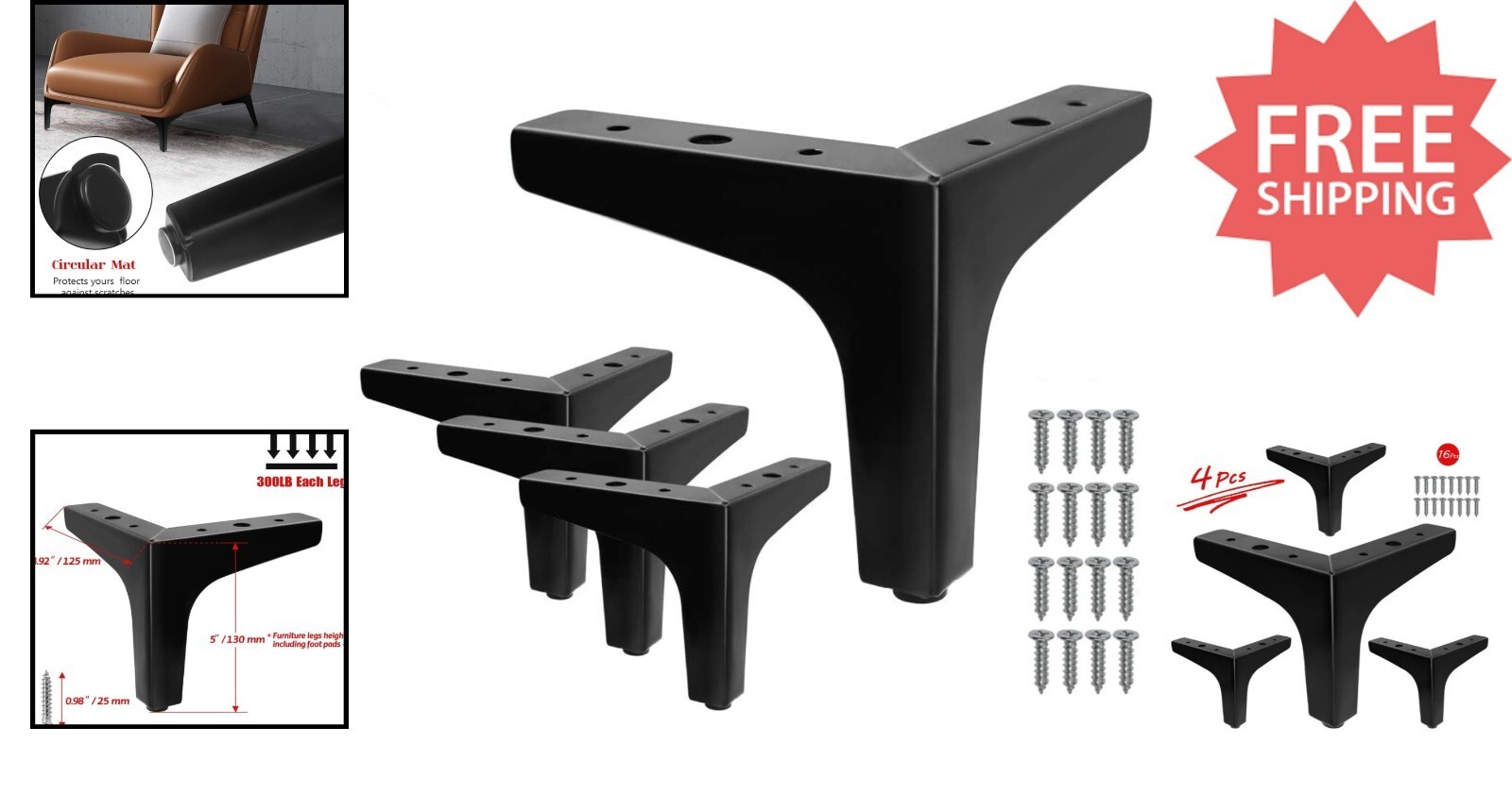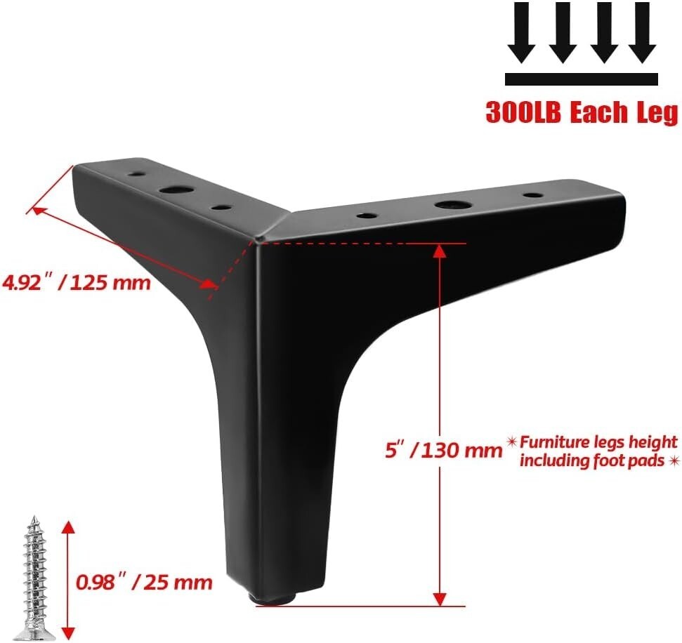 - Versatile 5-Inch Matte Black Metal Legs Set for Sofas, Tables & Chairs - 4 Pack