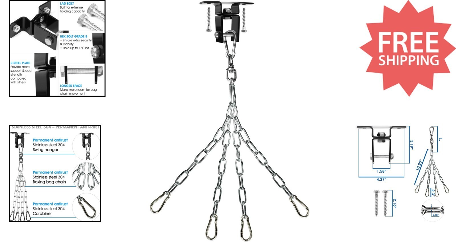 - Versatile Boxing Bag Hanger & Chain - Effortless Set-Up for Any Ceiling