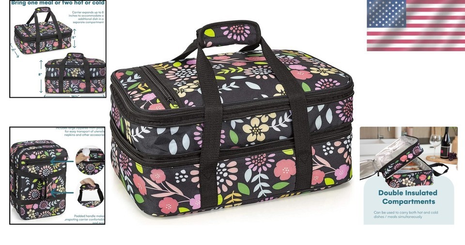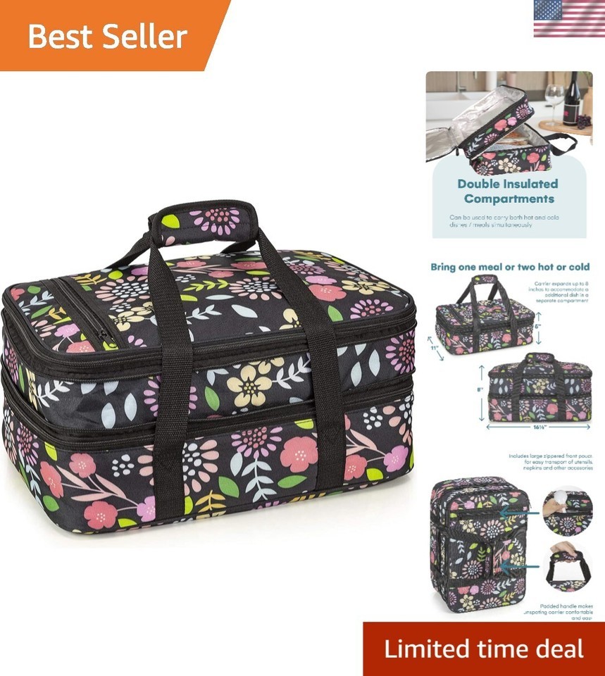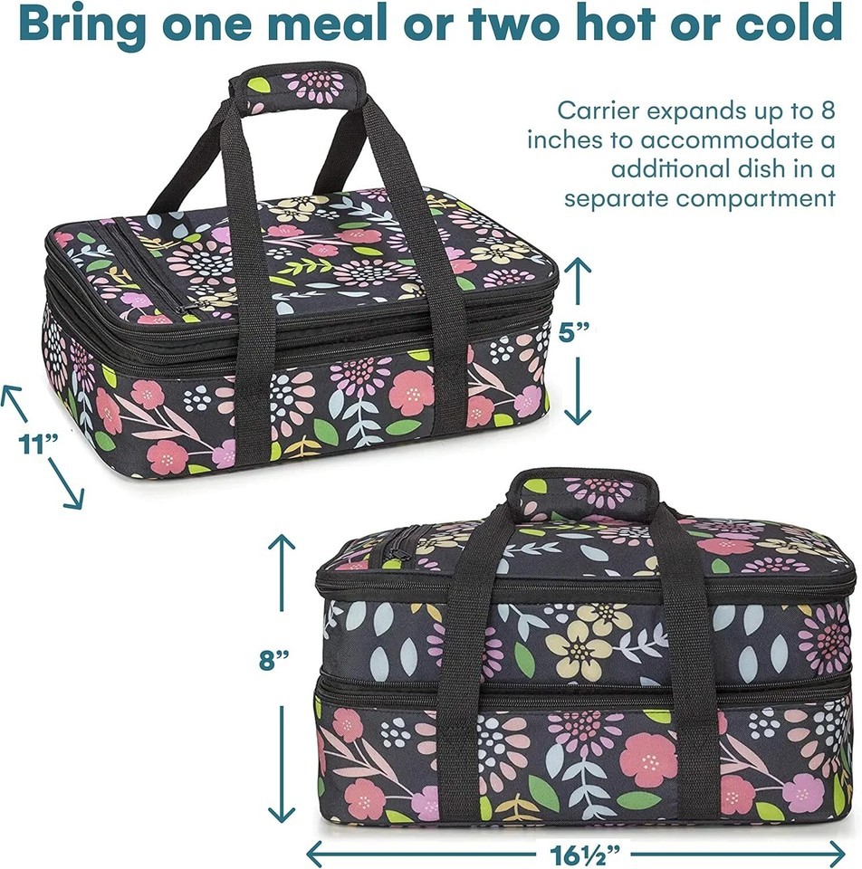 - Versatile Double Casserole Insulated Bag with Expandable Compartment for Events