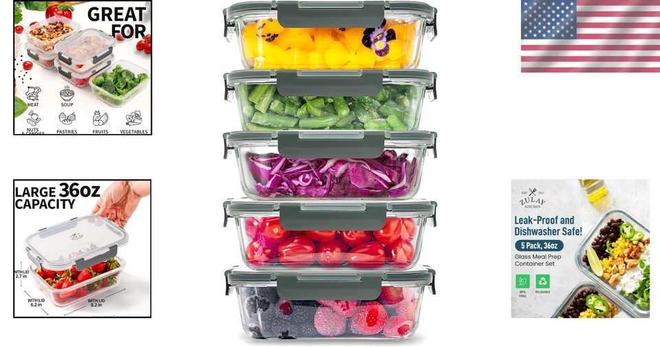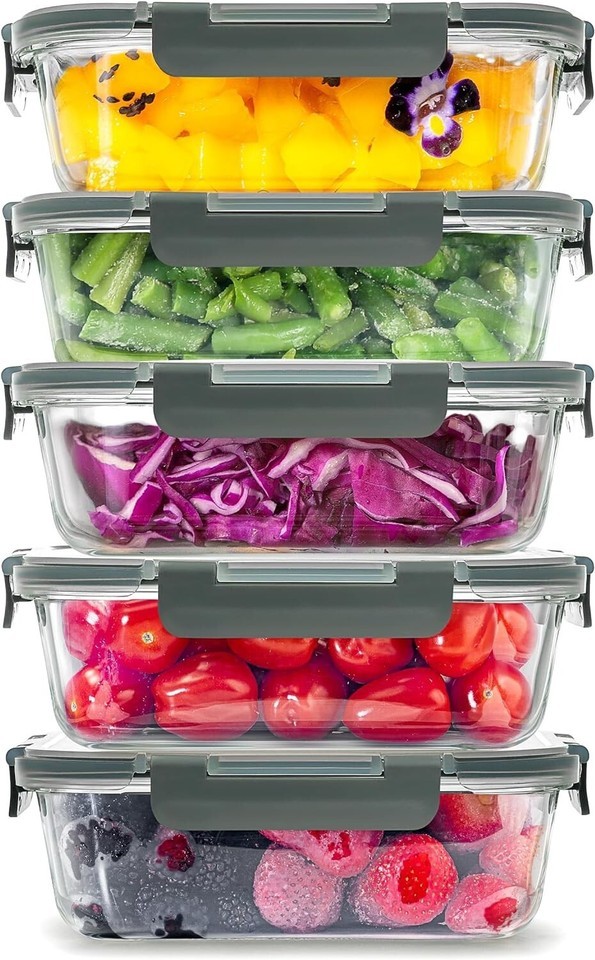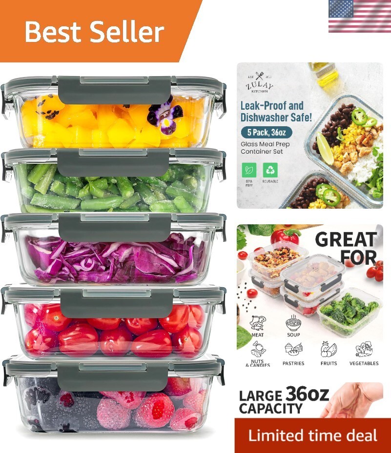 - Versatile Gray Glass Meal Prep Containers - 5 Pack, Dishwasher Safe & BPA Free