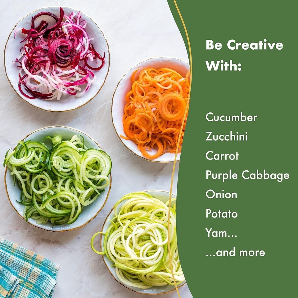 Compact and Efficient: Perfect for a wide variety of vegetables, enabling you to craft veggie noodles, vibrant salads, or crispy fries with just a flick of the wrist.