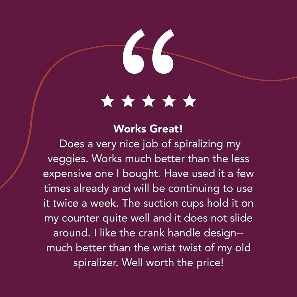 Sturdy construction guarantees that this spiralizer stands the test of time and remains your go-to kitchen tool.