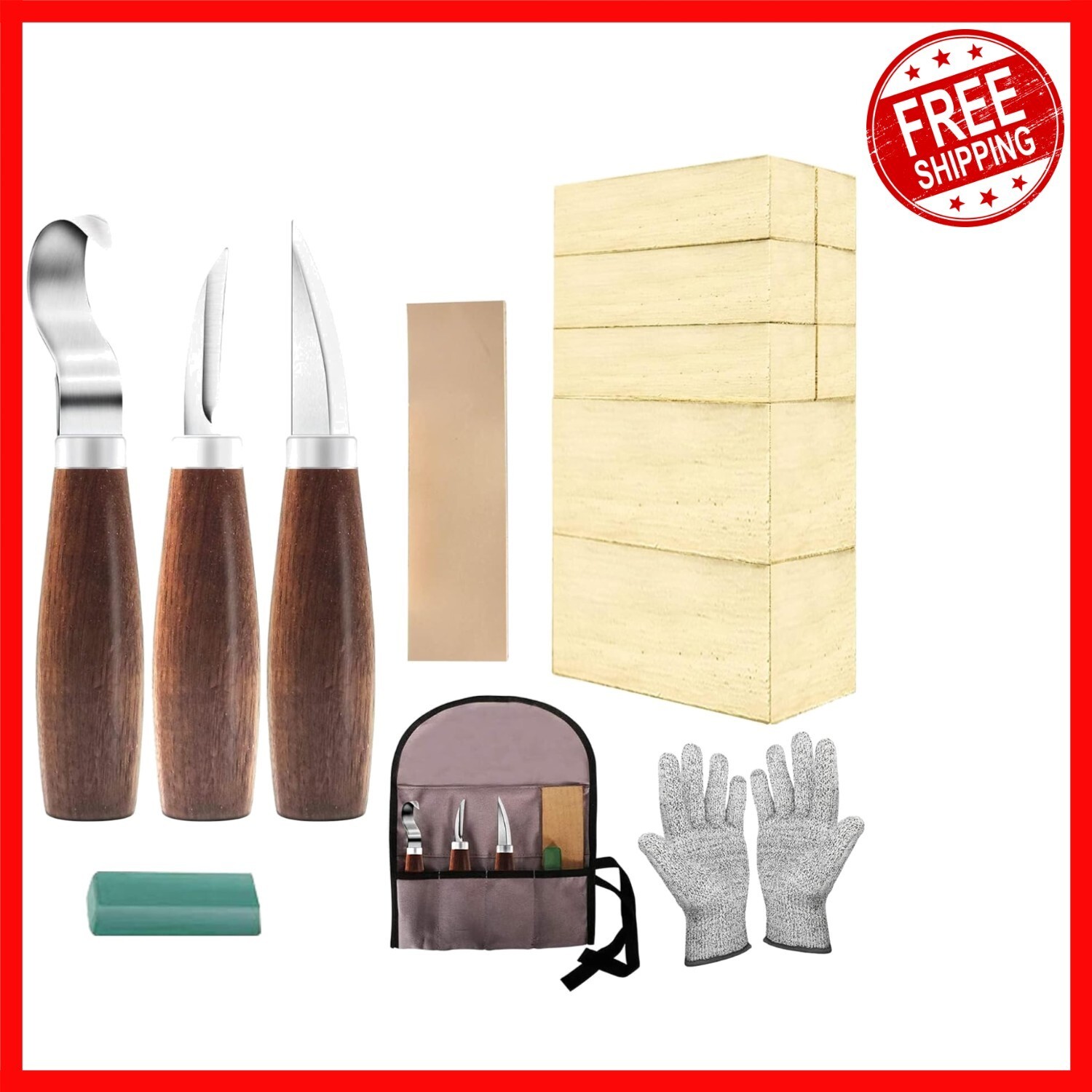 Versatile Whittling Kit: 3 Knives, 8 Blocks Protective Gloves for Creative Fun