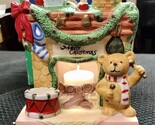 - Very Cool Vintage Ceramic Merry Christmas Bear At Fireplace Candle Holder
