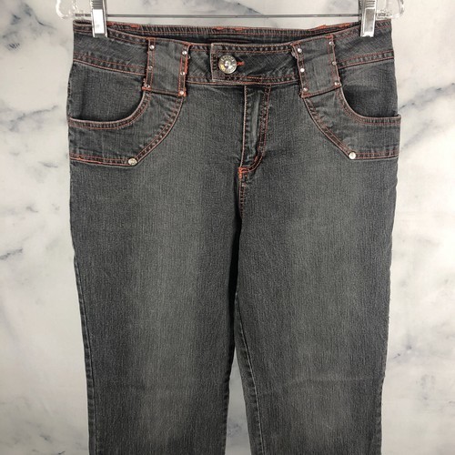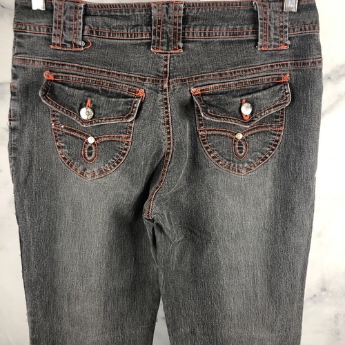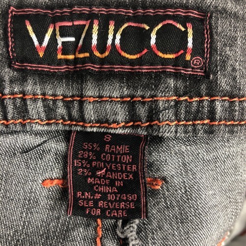 - Vezucci Women's Size 8 Black Wide Leg Slit Bootcut Cotton Blend Stretch Jean