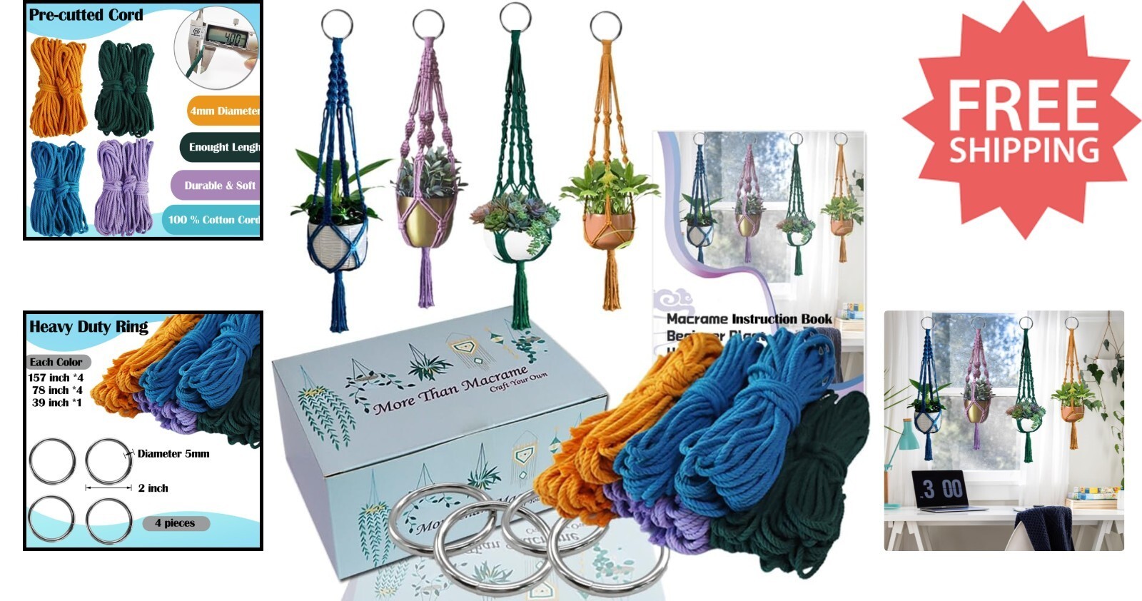 Vibrant Macrame Plant Hanger Kit with Instruction Book: Craft 4 Unique Hangers