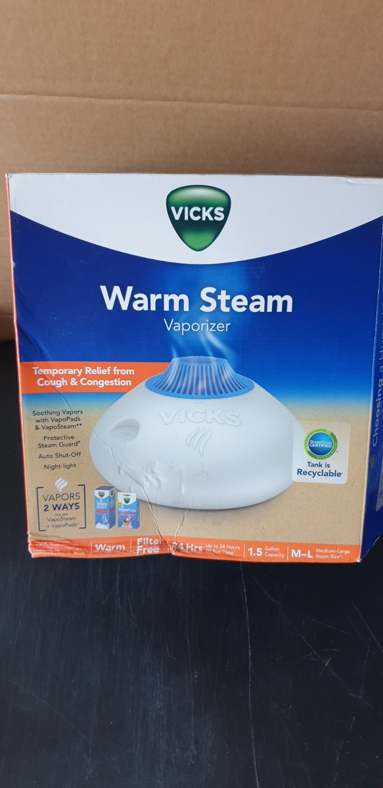 - Vicks Warm Steam Vaporizer Humidifier 1.5 Gallon Coughing & Congestion Relief