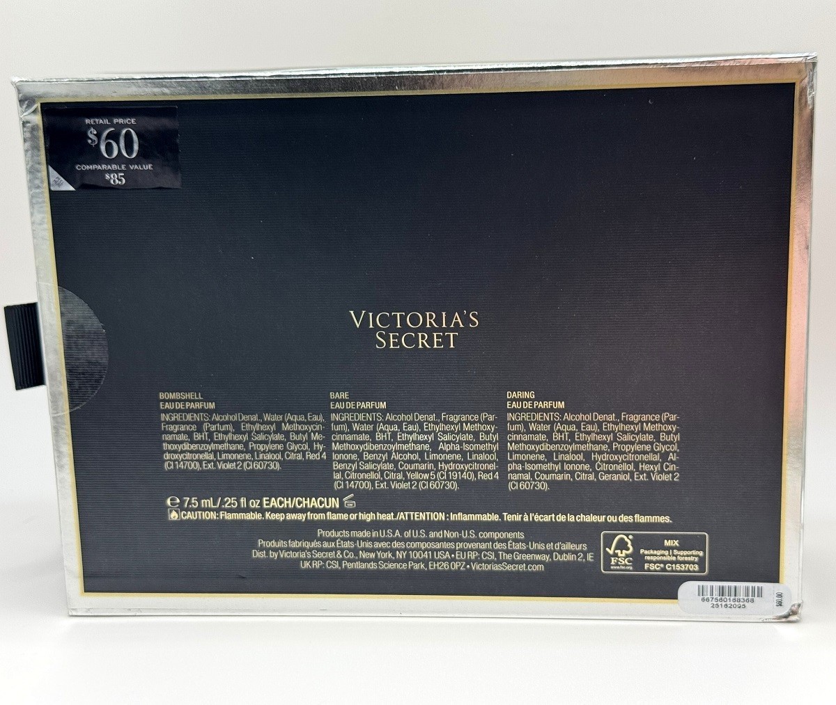 - Victoria's Secret Bombshell, Bare & Daring EDP Fragrance Gift Set + Travel Case