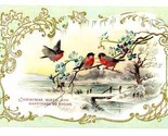 - Victorian Christmas greeting card robins bluettes lake