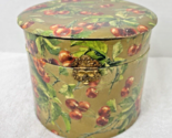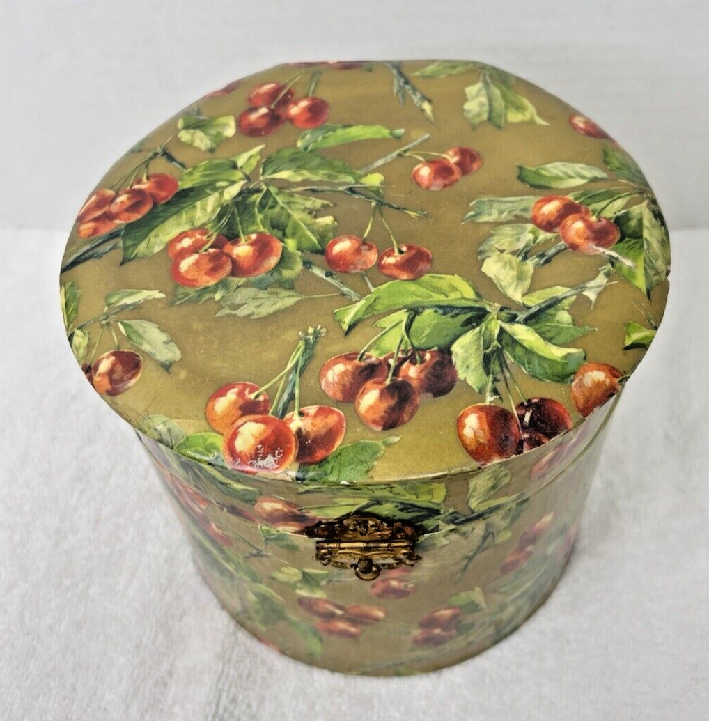 - Victorian Collar Box w Ruby Red Cherry Design on Gold Paper Over Wood W Silk