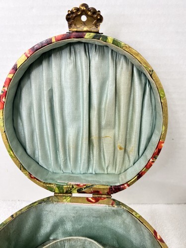 Victorian Collar Box w Ruby Red Cherry Design on Gold Paper Over Wood W Silk
