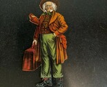 Victorian Die Cut Scrap Man Traveller Suitcase Salesman Paper Card Antique