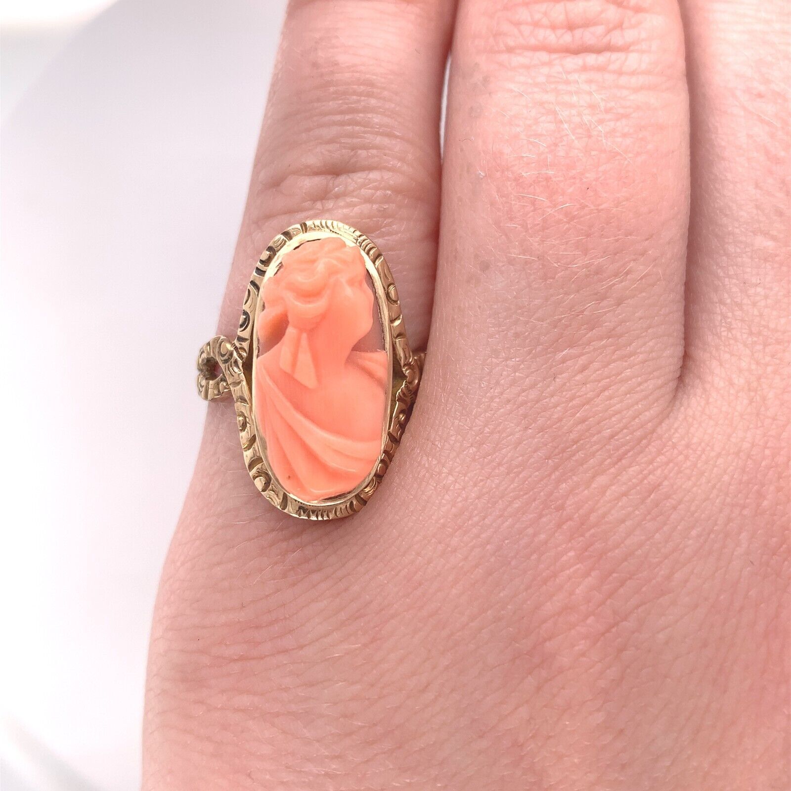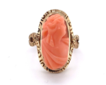 - Victorian Genuine Natural Coral Cameo 14K Yellow Gold Ring Size 5.75 (#J5976)