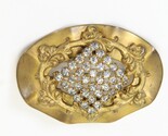 Victorian Revival Style Brushed Brass Rhinestone Sash Pin 2.5" x 1.75" x .6"