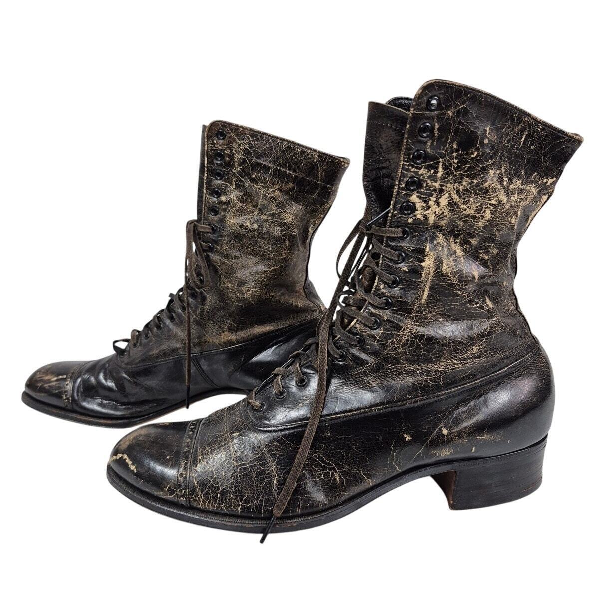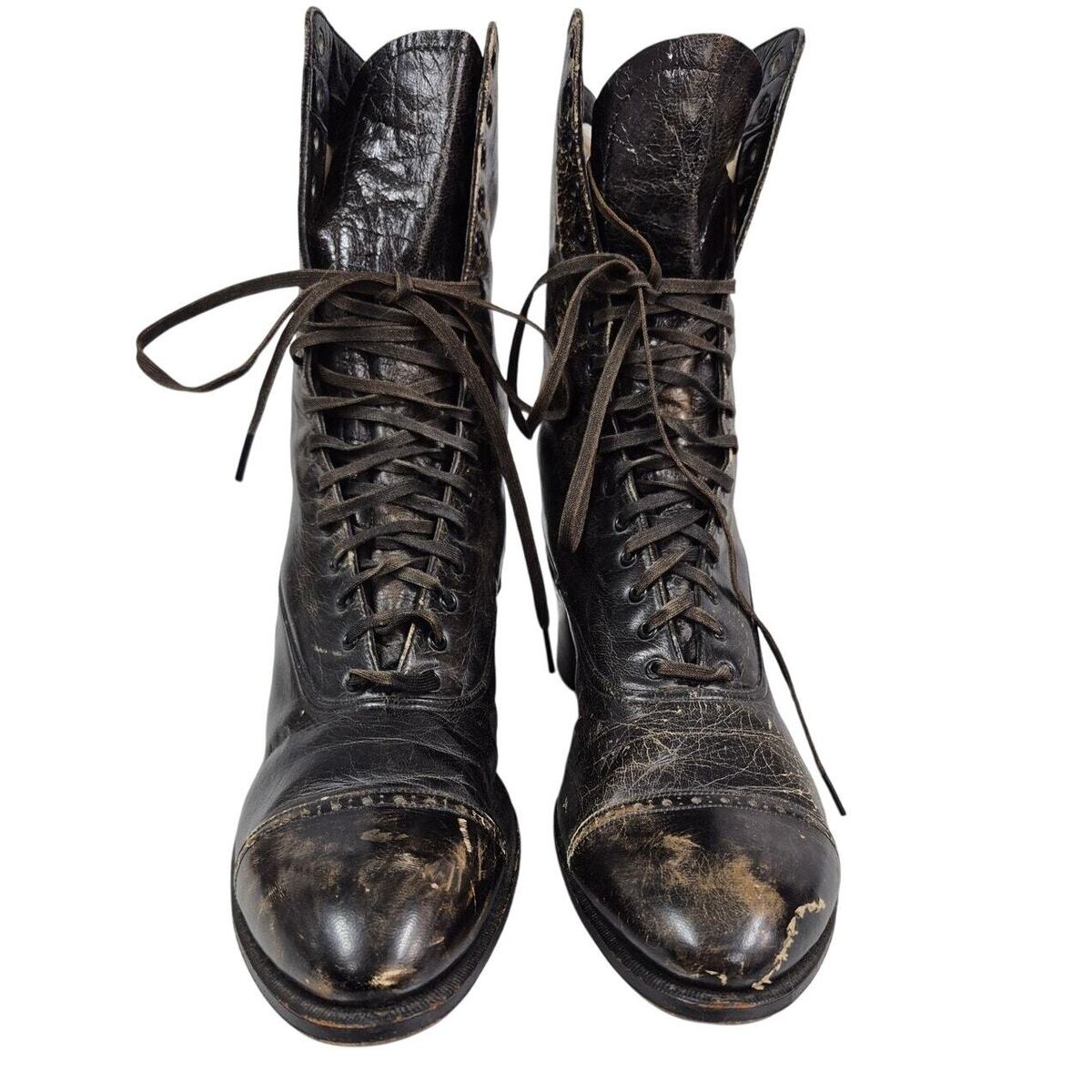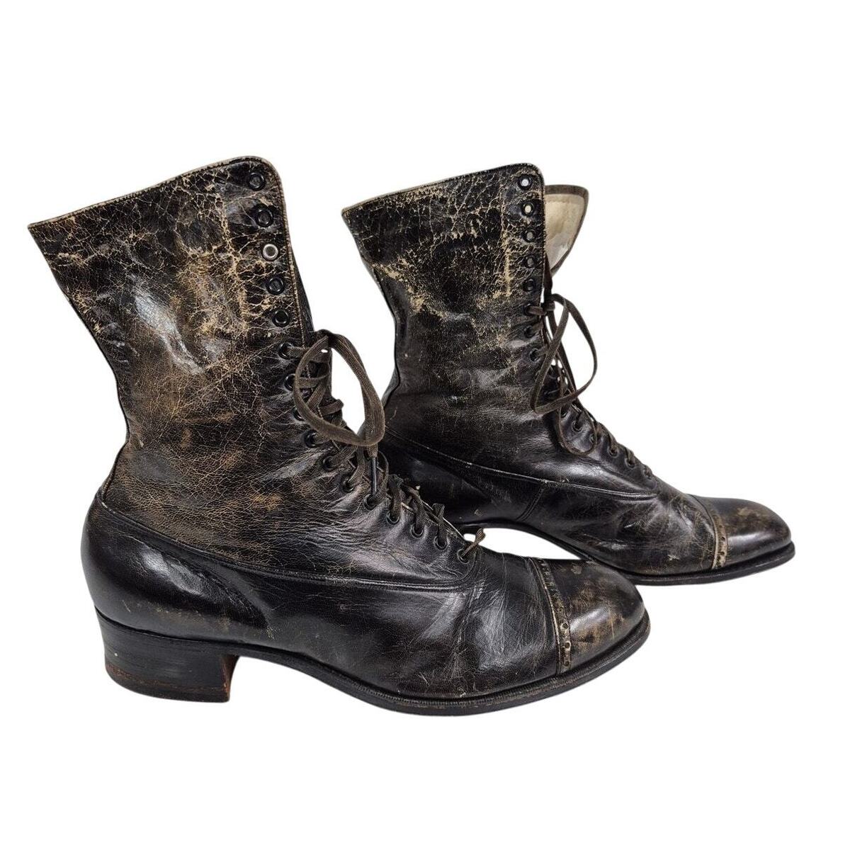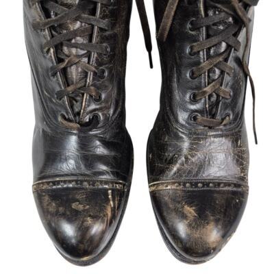 Victorian boots Steampunk Cantilever Brown Leather Lace Up Womens 6 Distressed