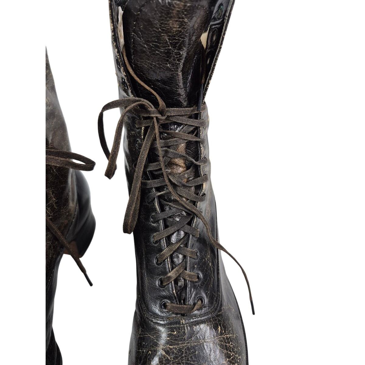 - Victorian boots Steampunk Cantilever Brown Leather Lace Up Womens 6 Distressed
