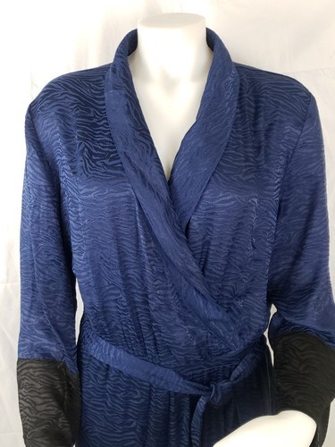- Victorias Secret Jumpsuit M Blue Satin Long Sleeve Zebra Loungewear Lightweight