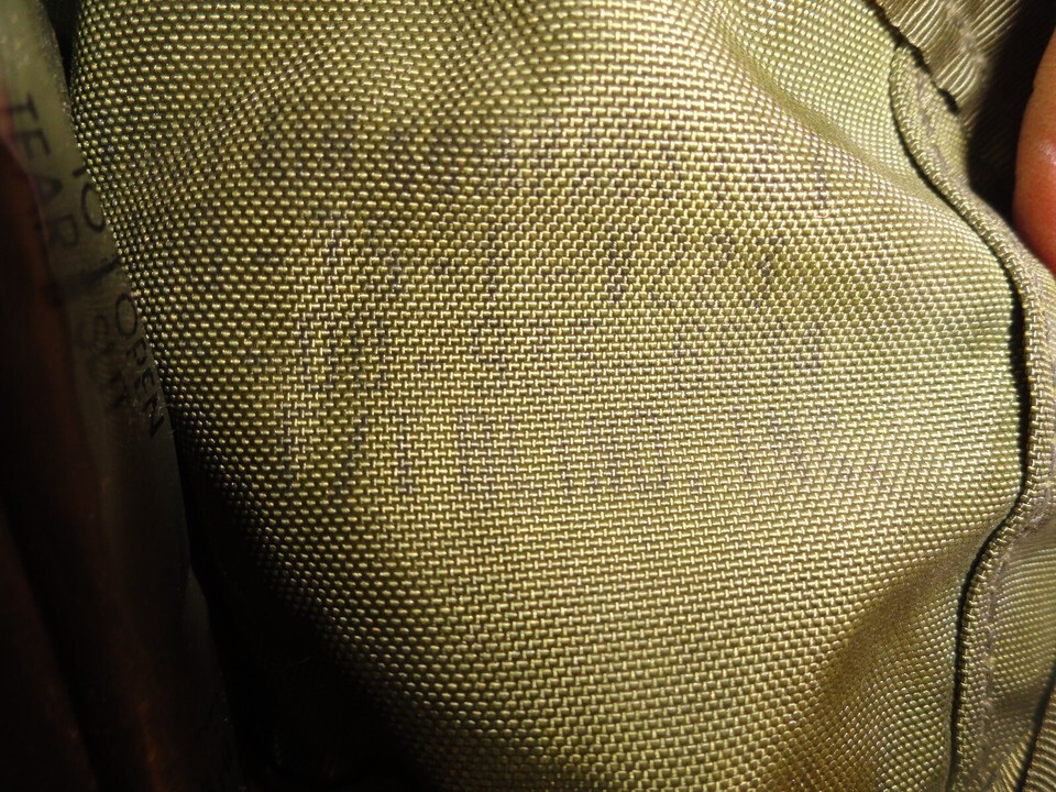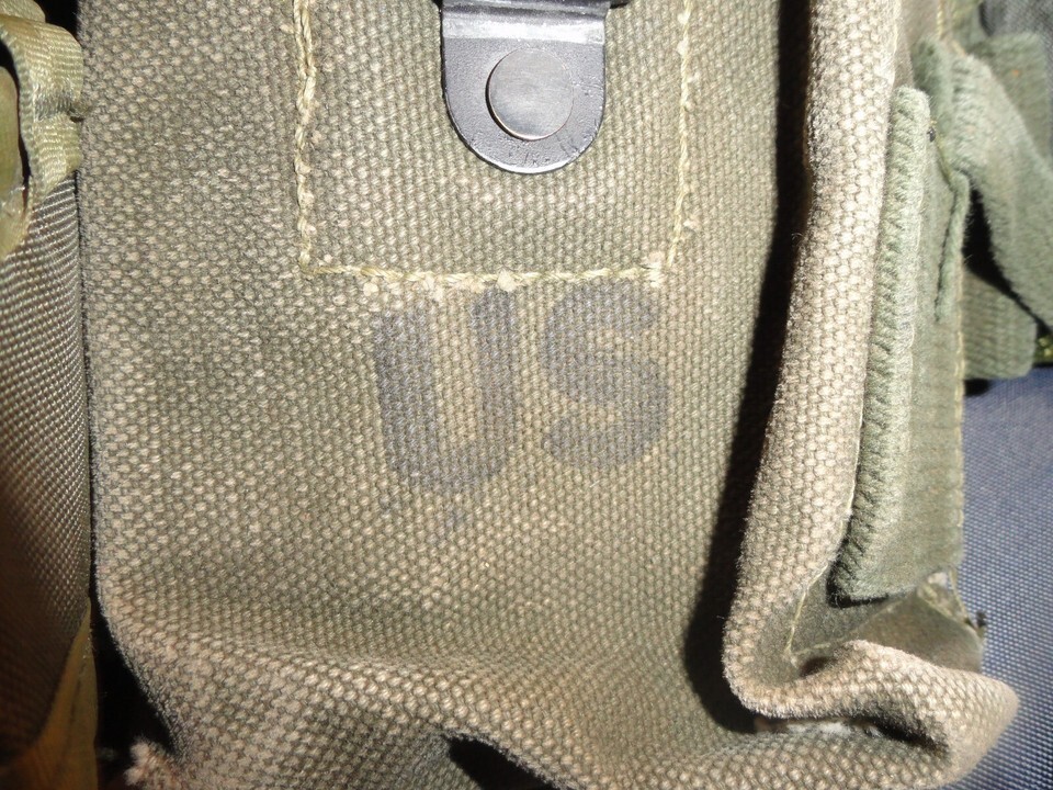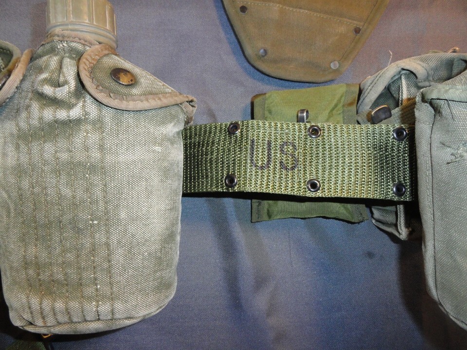 POUCHES AND ACCESSORIES SHOWS WEAR : I COULD EASILY WASH THIS WHOLE RIG, BUT I BELIEVE EVERY SCUFF, EVERY MARKING, EVERY SCRAPE IS A BATTLE SCAR FROZEN IN TIME. EVEN WHEN A SOLDIER, AIRMAN, MARINE, SAILOR WRITES THEIR NAME OR UNIT ON THEIR EQUIPMENT ITS A PIECE OF ART THAT LIVES FOREVER.