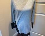 VINCE CAMUTO Baby Blue, Charcoal Gray Multicolor Crewneck Sweater SZ S