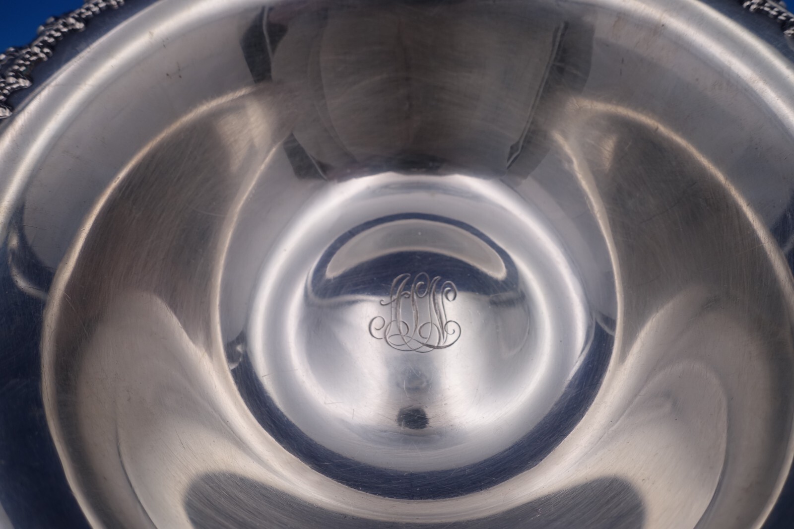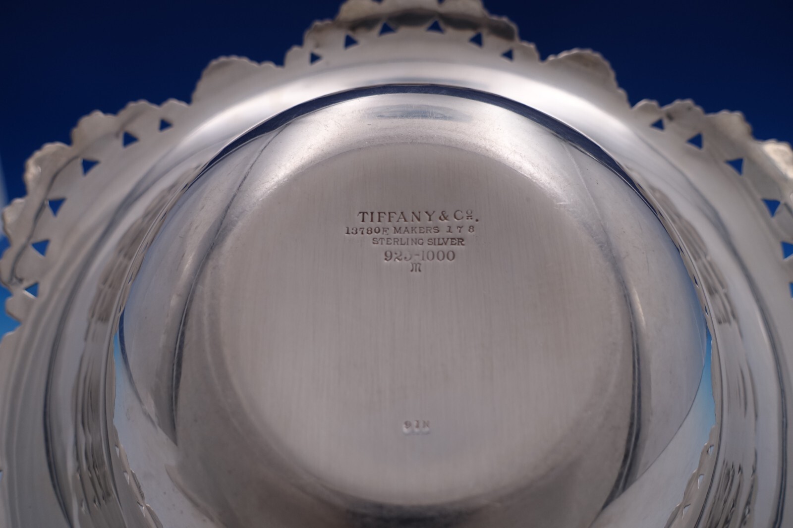 Lovely Vine by Tiffany and Co sterling silver wine coaster with raspberries motif marked #13780E/178. This coaster measures 2 1/2" tall x 9" in diameter and weighs 11.7 troy ounces. It is monogrammed in the center (see photos), and is in good estate condition as shown. Beautiful!