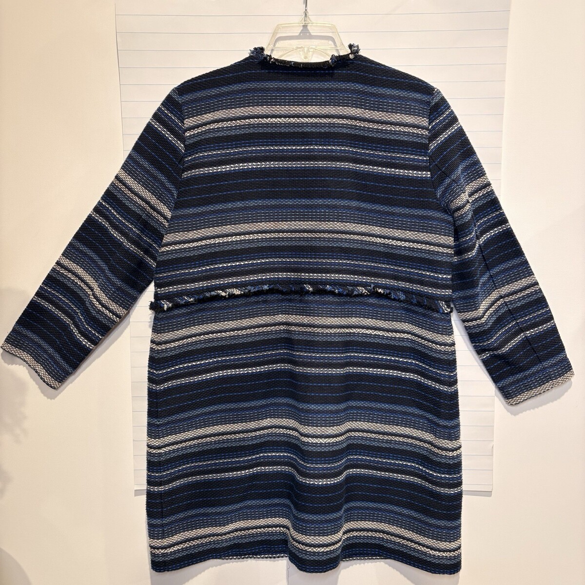 The Vineyard Vines Medium Women's Striped Woven Cotton Jacket in Deep Bay Blue is a stylish and versatile outerwear option for the modern woman. Made from a comfortable cotton blend fabric with a knit texture, this mid-length jacket features a classic striped pattern in a beautiful blue color. Perfect for various occasions from casual outings to workwear and even parties, this jacket offers a casual style with light accents and convenient pockets. Designed with the iconic Vineyard Vines brand and suitable for the seasons of summer, fall, and spring, this jacket is a must-have addition to any woman's wardrobe.