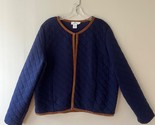 Vineyard Vines Sz XL Blue Quilted Jacket Brown Leather Trimmed Pockets