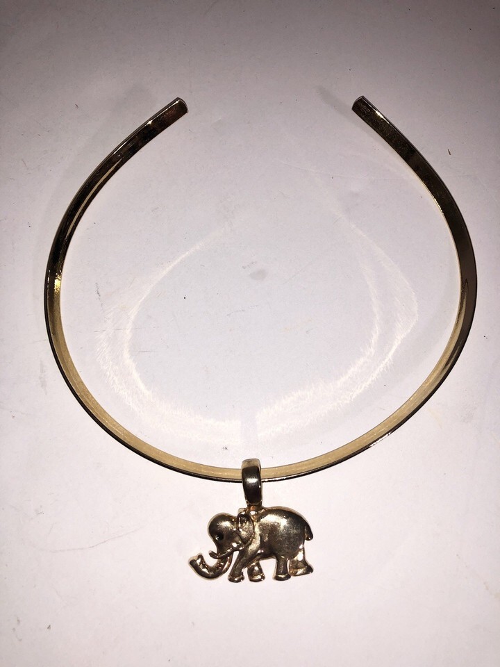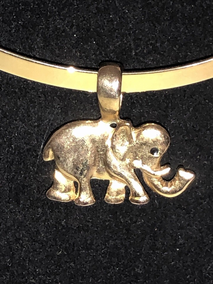 - Vintage 1.5” Elephant Slider Pendant & Choker Necklace Statement Gold Tone Chunk
