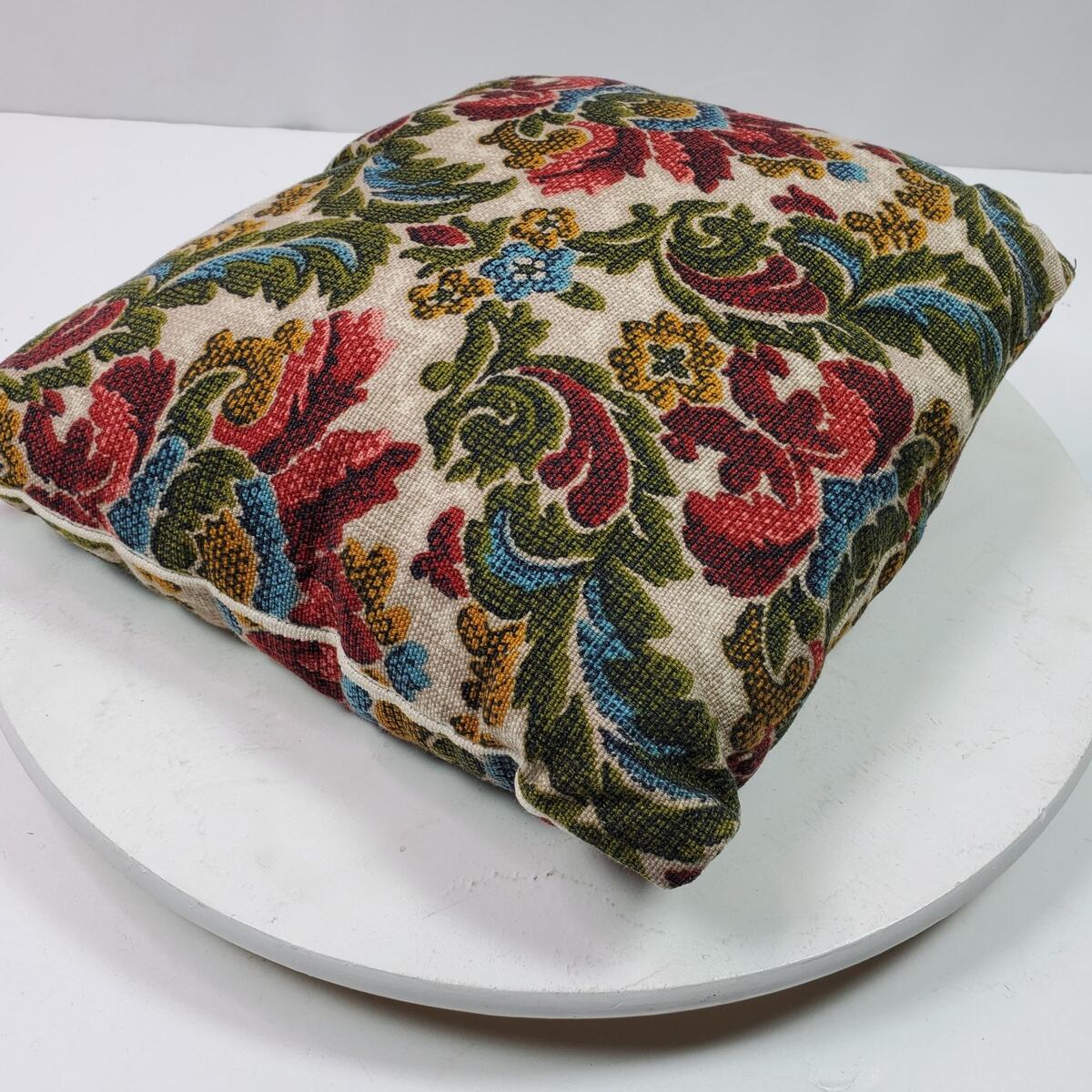 Vintage 10x11 Inch Crewel Hand Embroidered Throw Pillow w/ Case Floral Garden