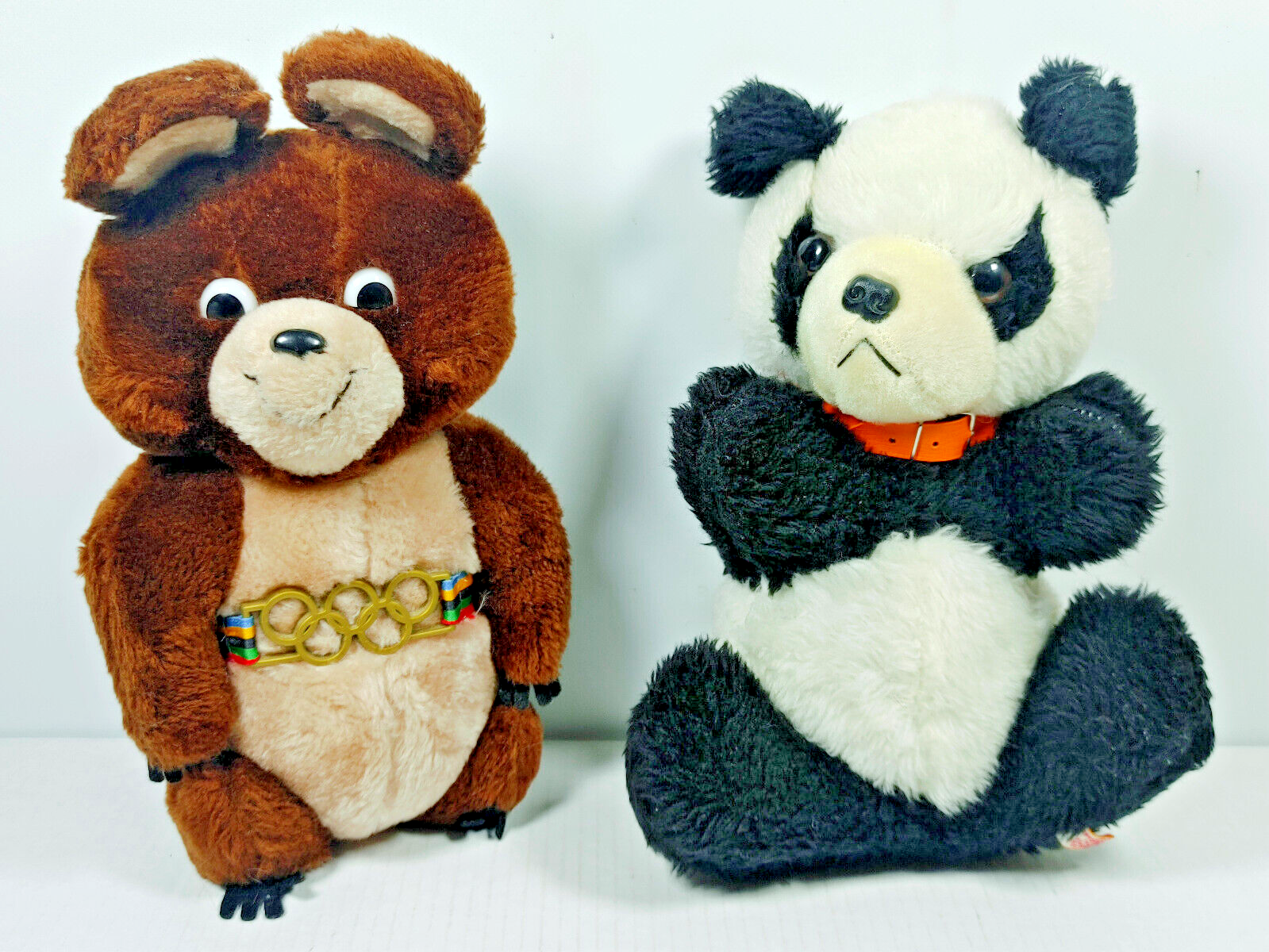 - Vintage 12" Dakin Olympic Mascot Misha Bear Plush & Panda with Orange Collar Lot