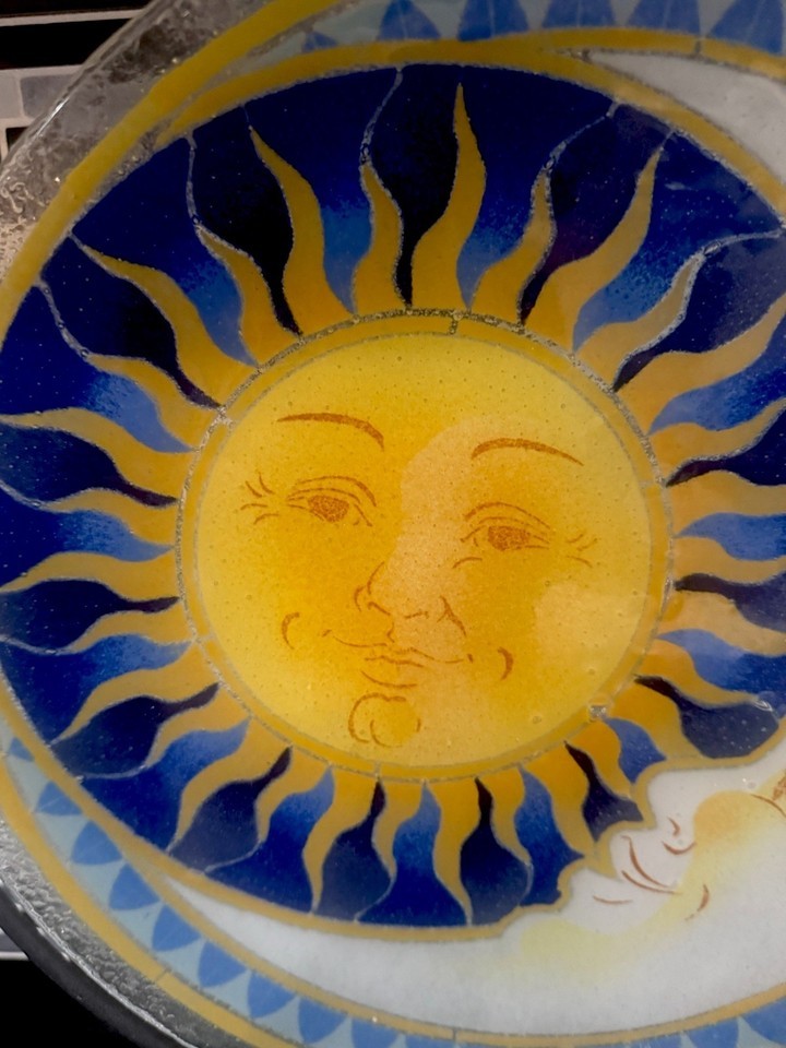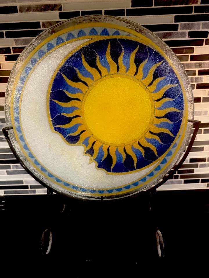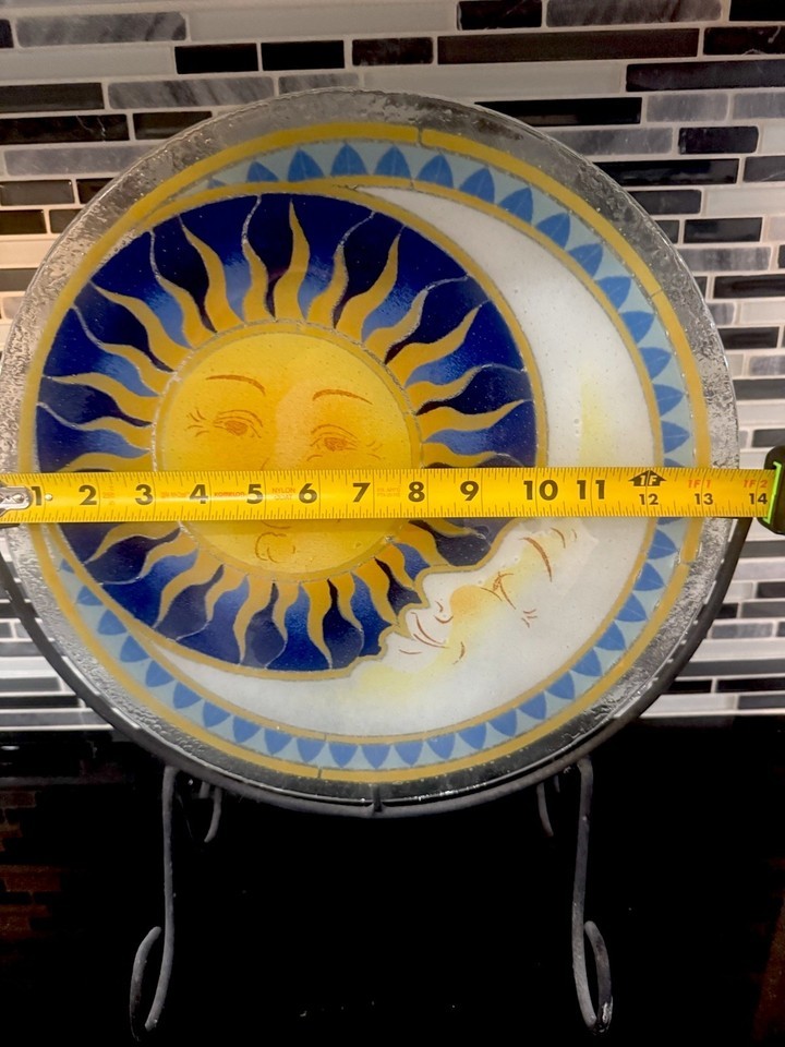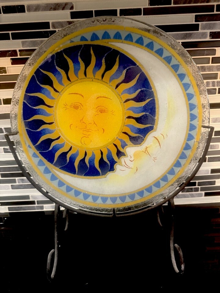 - Vintage 14” Glass Sun & Moon Fused Glass Plate – Celestial Wall Art Boho Décor