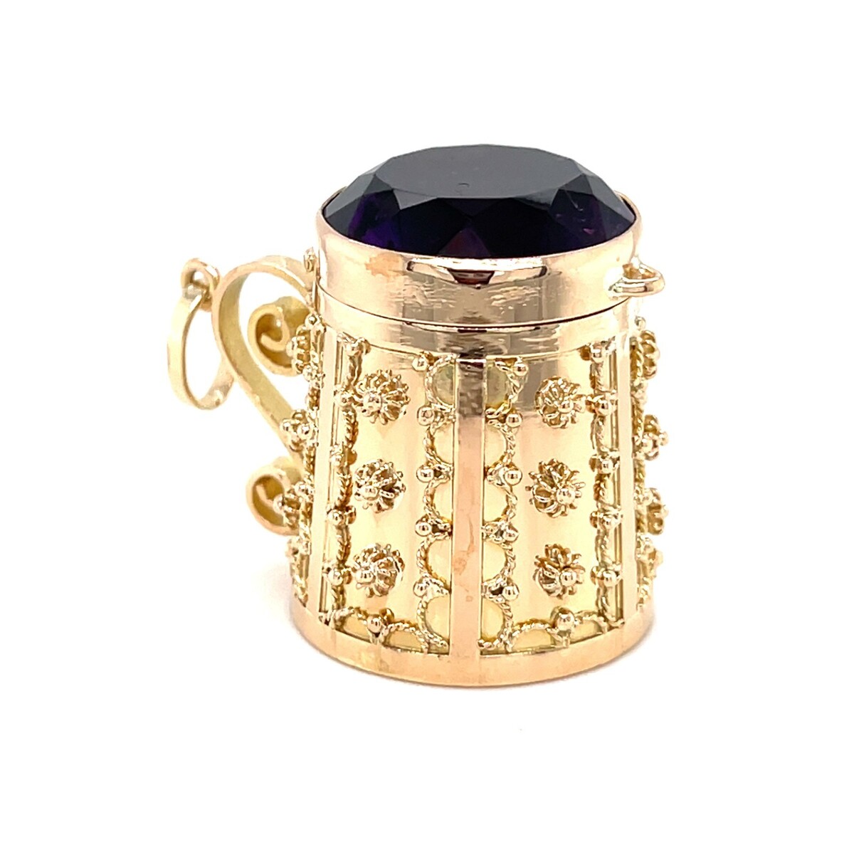 - Vintage 14K Gold Amethyst Miniature Beer Stein Charm Pendant Locket w/ Hinge