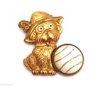 - Vintage 1920s Brooch Brass Puppy Dog with Celluloid Ball