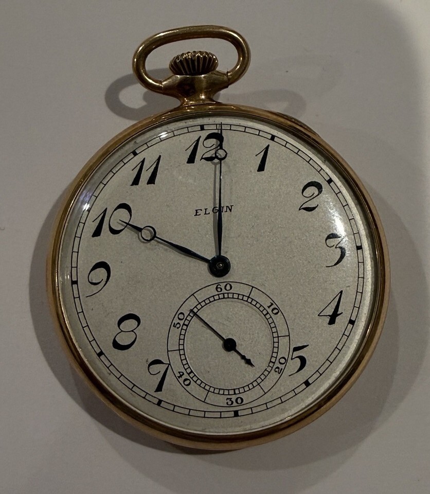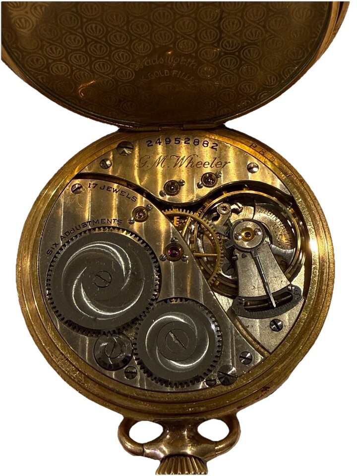 - Vintage 1922 Elgin GM Wheeler 17j 6 Adj + Wadsworth 14k Gold Filled Pocket Watch