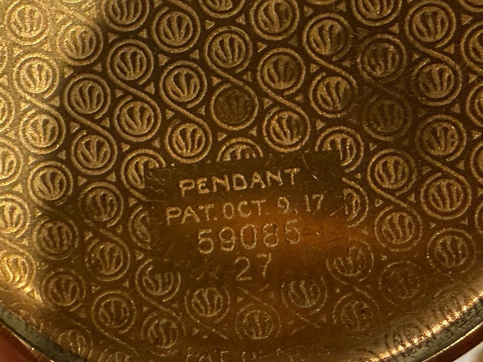 Inside back stamped: Pendant Pat. Oct. 9 17 59085 27